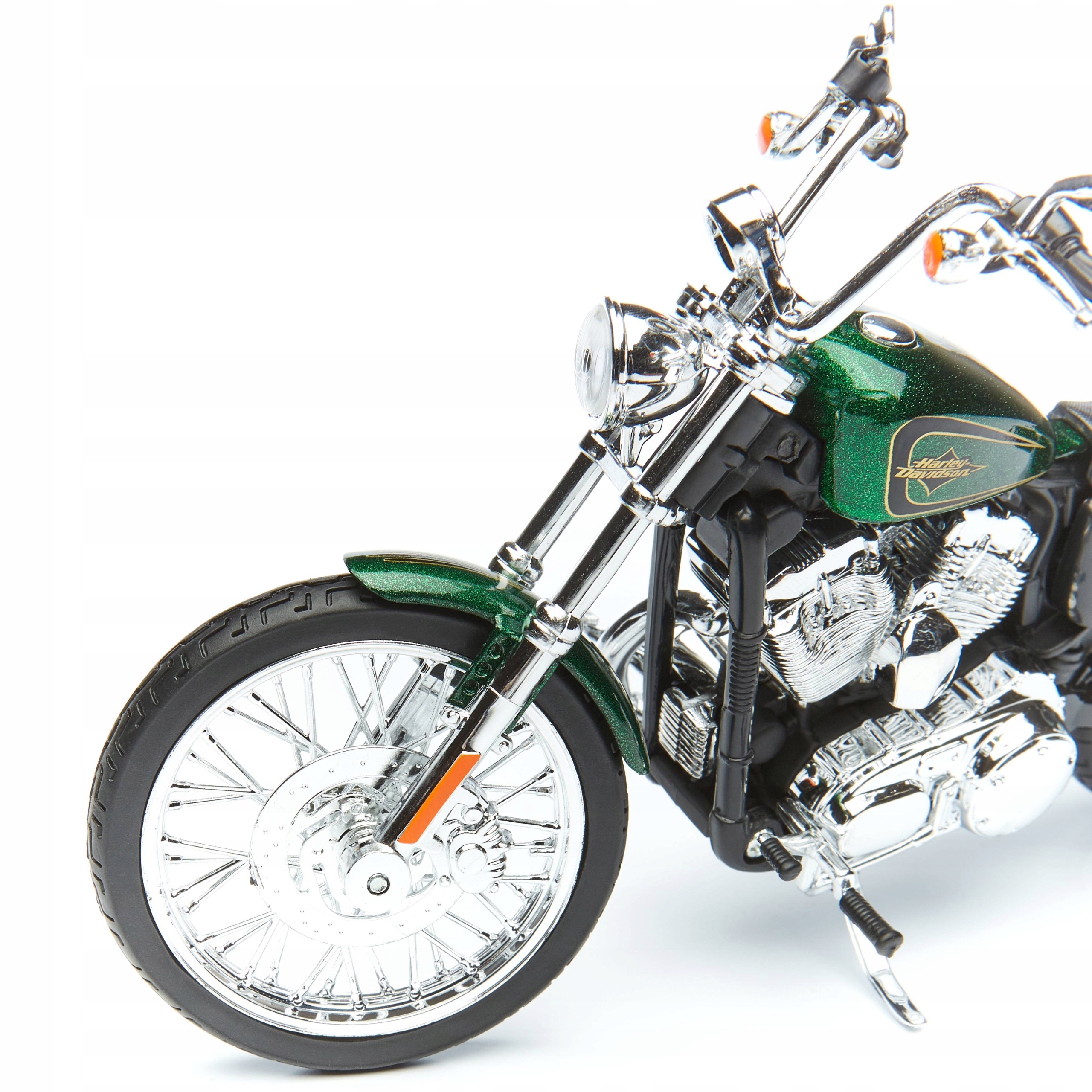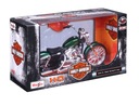 Motocykl na licencji Harley Davidson w skali 1:12. Seria motocykli Harley-Davidson charakteryzuje się ruchomymi elementami oraz dbałością o każdy szczegół. Model jest dokładnym odwzorowaniem w skali prawdziwego motocykla. Posiada wysuwaną nóżkę, dzięki czemu wspaniale prezentuje się na biurku lub półce kolekcjonera. Wiek: 8+. Wymiary opakowania: szer. 22 cm, wys. 12,5 cm, gł. 8,5 cm.