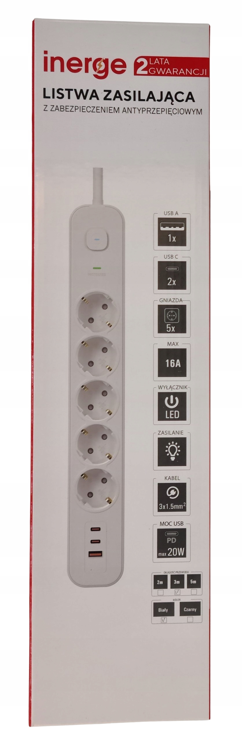 ⚡ Zabezpieczenie antyprzepięciowe, dodatkowa ochrona urządzeń podłączonych pod listwę.