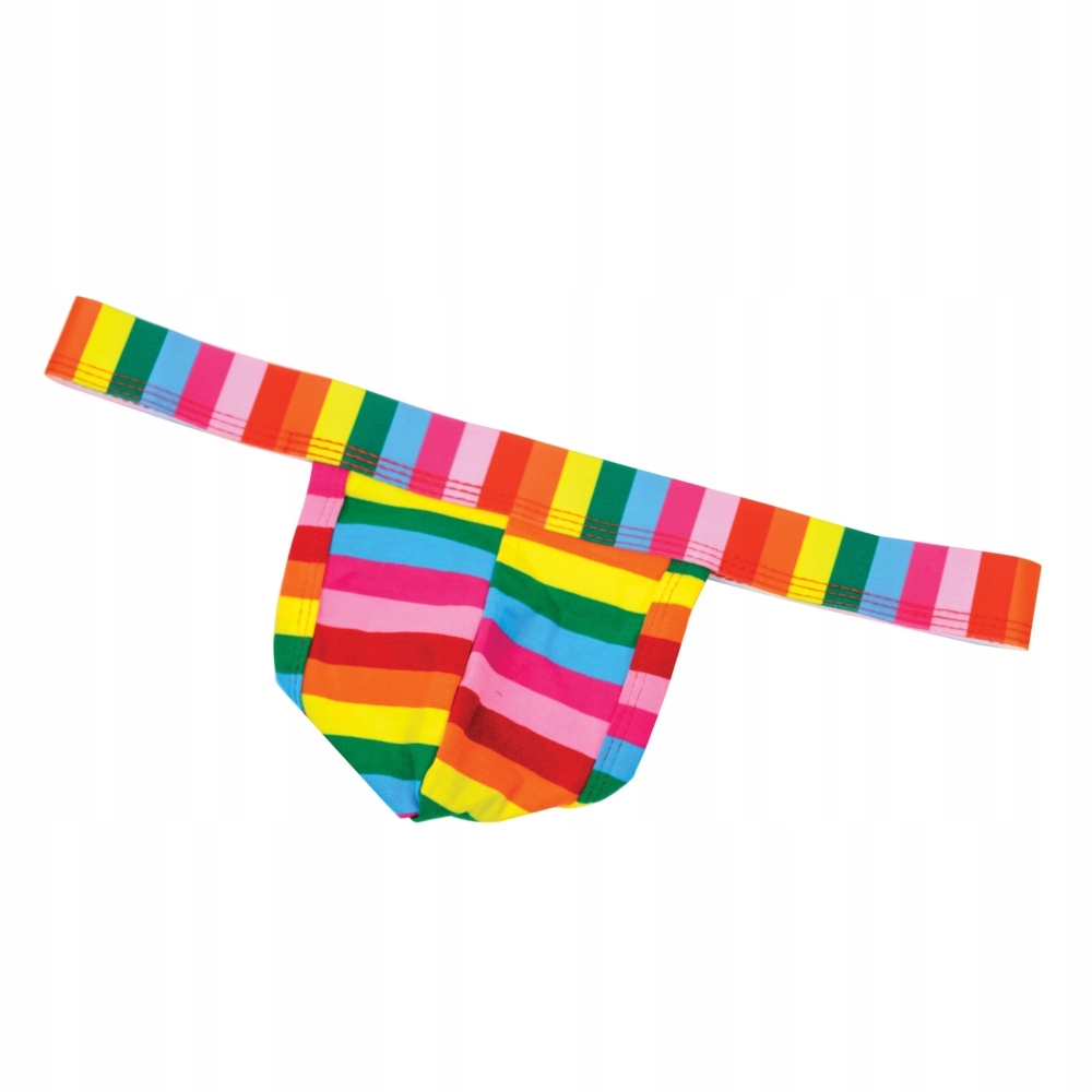 Tęczowe stringi 100% bawełnaZabawny gadżet w postaci tęczowych stringów. W takich stringach twój mężczyzna będzie na pewno wyjątkowy :). Przeznaczone dla ludzi z poczuciem humoru, którzy lubią łóżkowe zabawy i nie tylko. Rozmiar uniwersalny.Gadżet w skrócie:- tęczowe stringi- rozmiar uniwersalny- materiał: 100% bawełna- zapakowany w kolorowe pudełko z zawieszką- super prezent dla ludzi z poczuciem humoru ;)Wymiary produktu: 14 x 11,5 x 3,5 cmWaga produktu: 0,12 kgMinimalne zamówienie: 1 sztukaStand/display: brak