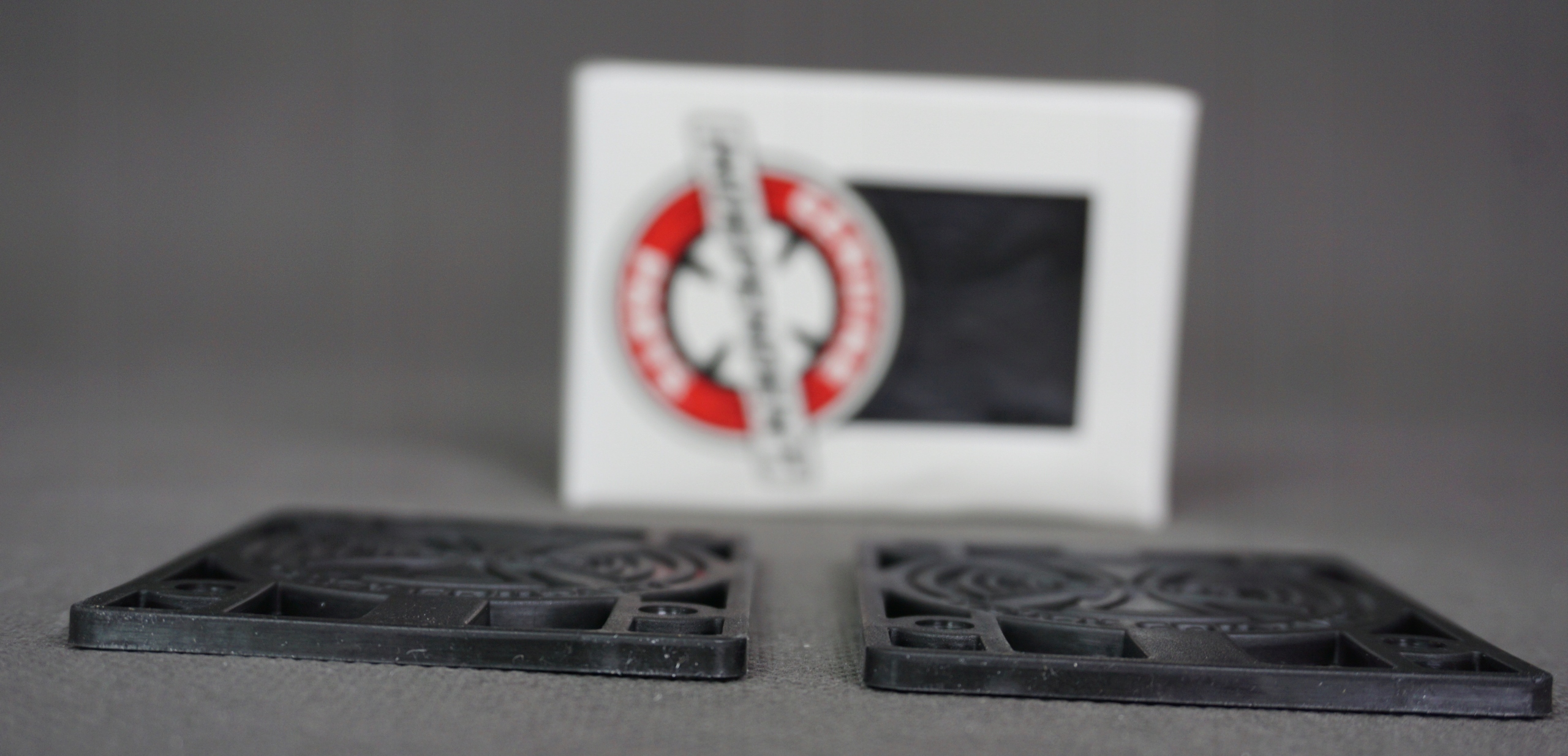 Podkładki oczywiście nowe w fabrycznym kartoniku . Zestaw zawiera komplet podkładek do 2 trucków . Wykonane z grubego i solidnego plastiku, idealne do deskorolki i longboarda.