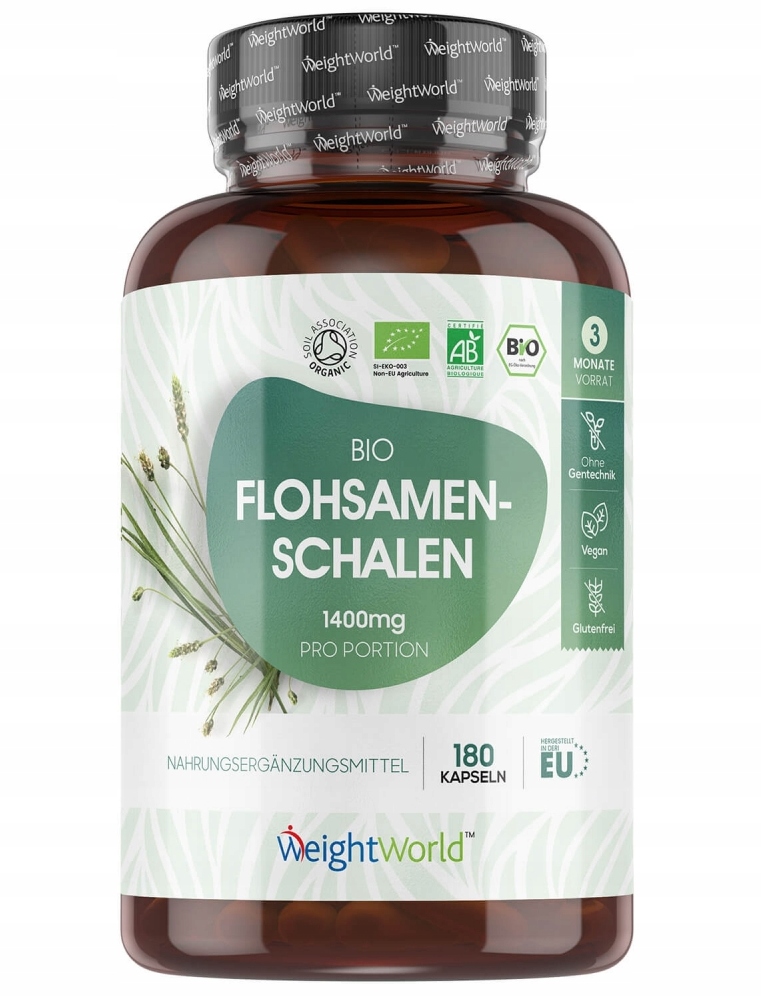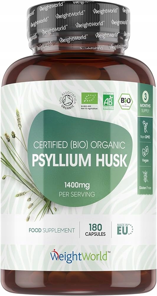BIO organiczna łuska babki płesznik (Plantago ovata), otoczka kapsułki: hypromeloza (HPMC)