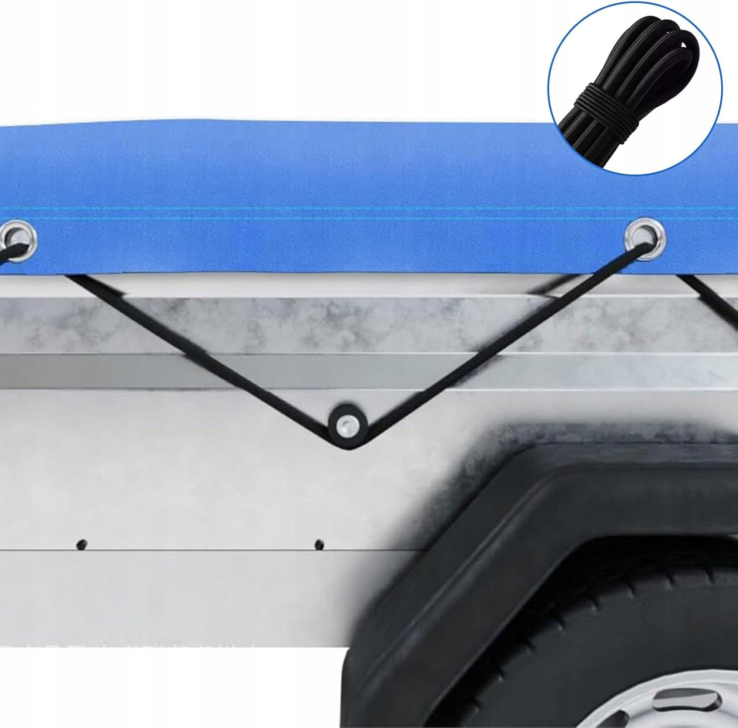 Gumowe paski napinające plandeki przyczepy można skrócić i zamocować. Wszystkie otwory i krawędzie są bezpiecznie zamocowane i można je łatwo zainstalować na odpowiedniej przyczepie za pomocą elastycznych pasków i zacisków.