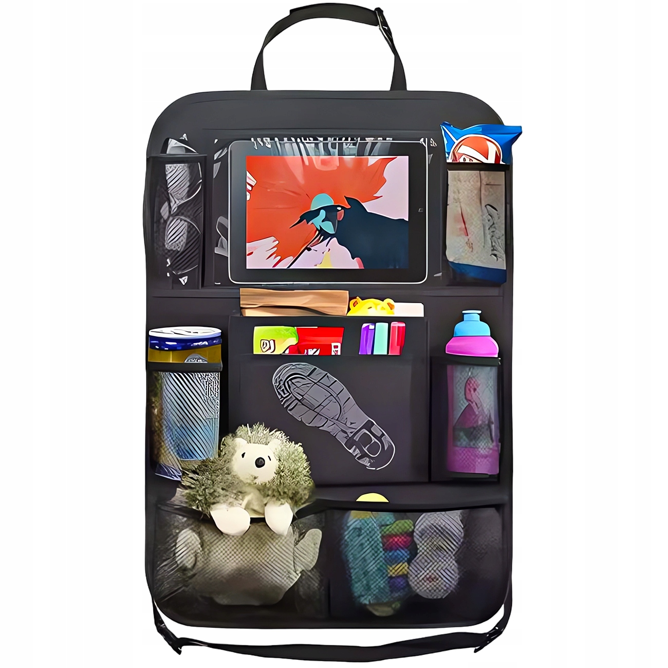 Organizer został wykonany z myślą o każdym rodzaju siedzeń samochodowych. Idealnie dopasuje się do tyłu siedziska zapewniając komfort użytkowania.