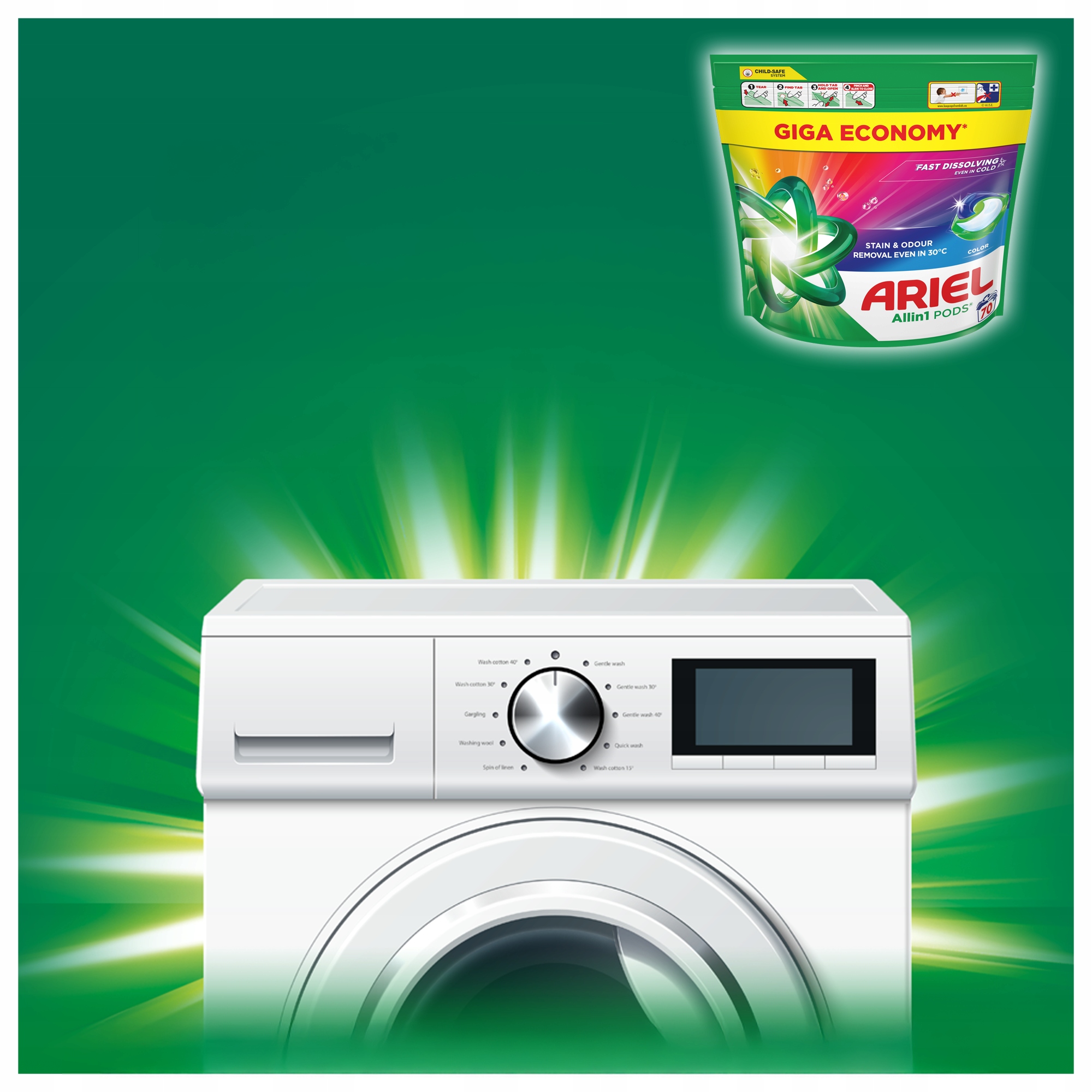 Ariel, marka zalecana przez producentów Whirlpool, Electrolux, Candy i Beko, przedstawia kapsułki do prania Ariel Allin1 PODS Color, które zapewniają doskonałe usuwanie uporczywych zabrudzeń, nawet w temperaturze 30°. Zostały opracowane tak, aby doskonale prać nawet w chłodniejszych cyklach, szybko rozpuszczając się nawet w zimnej wodzie i zapewniając nieskazitelne efekty.