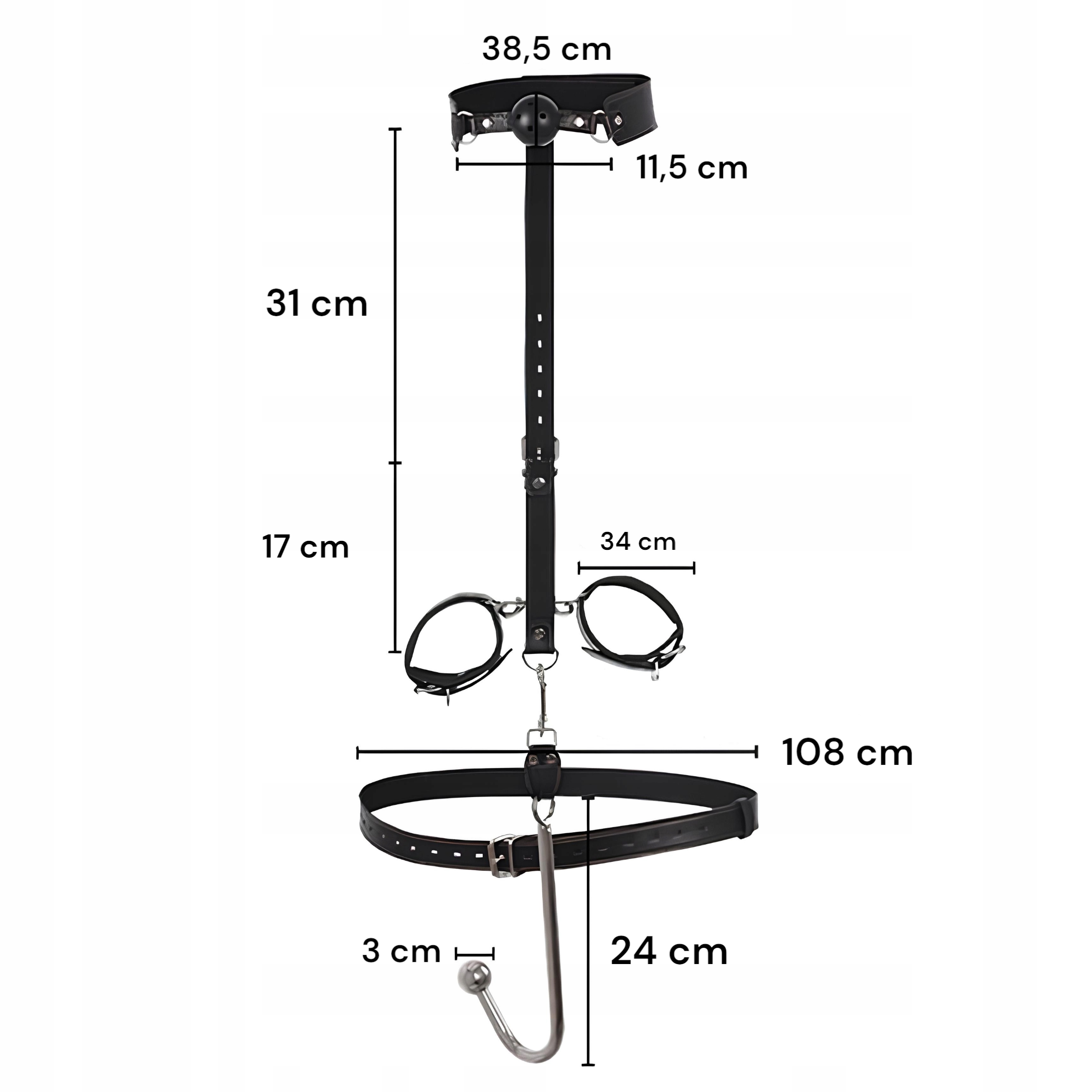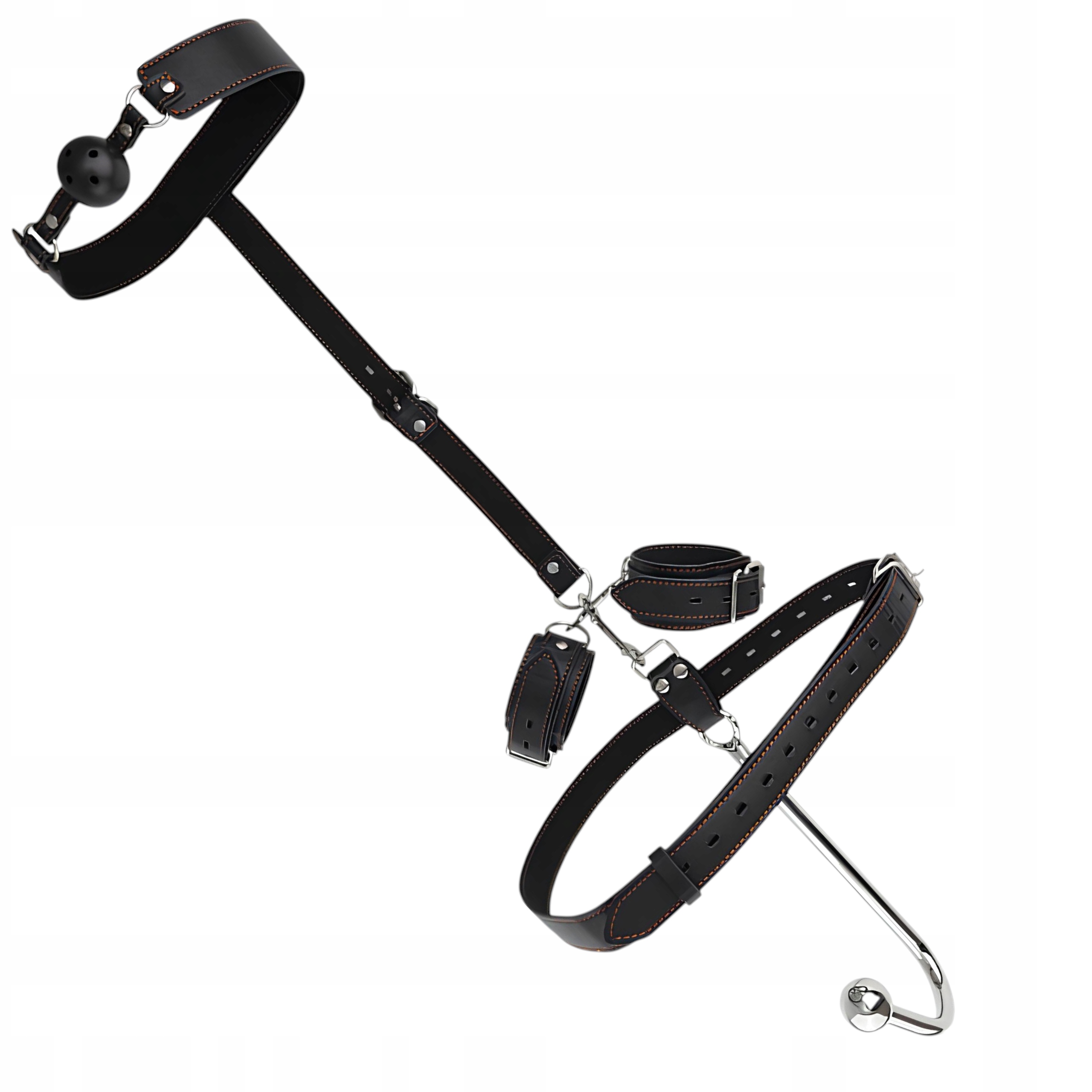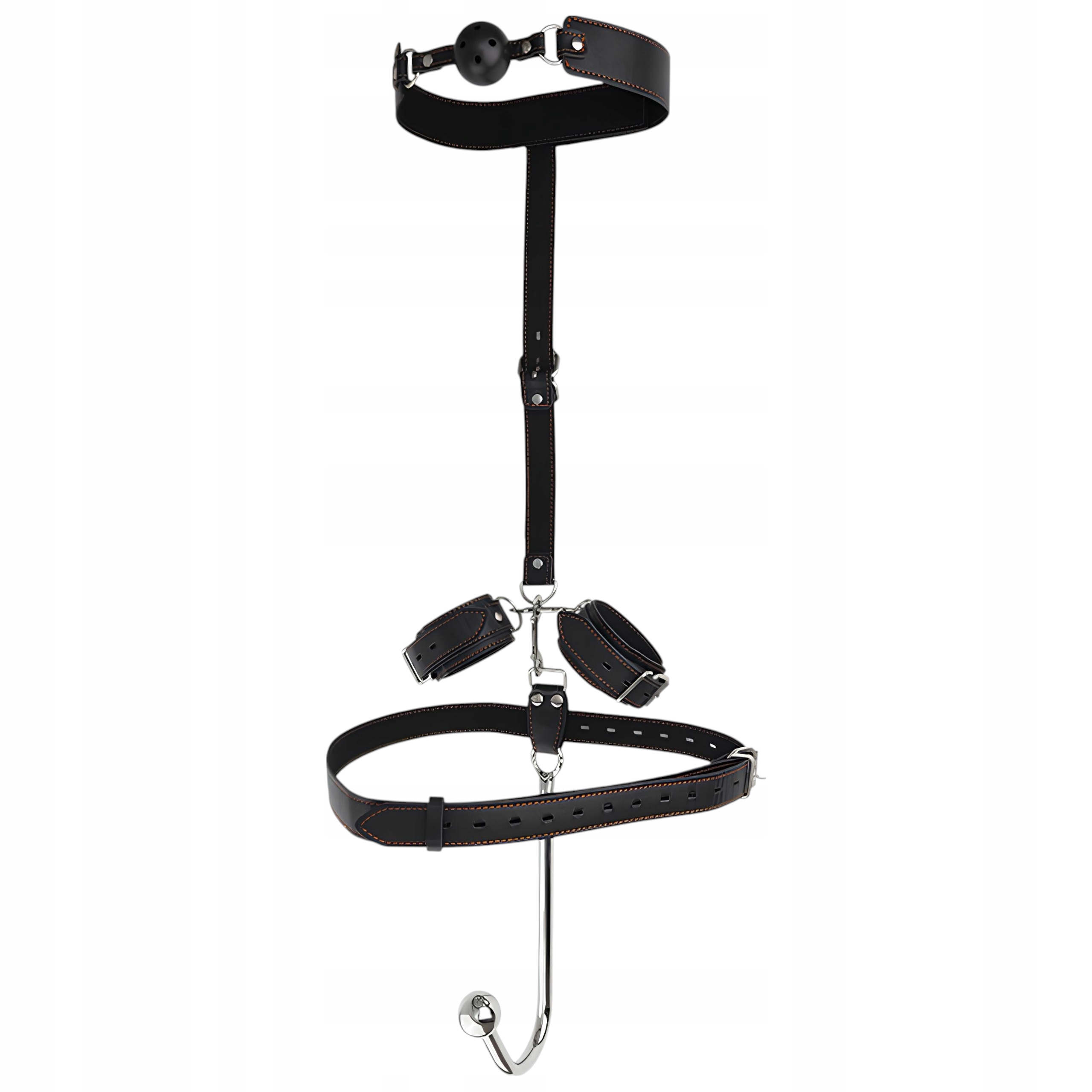 Ekskluzywny zestaw BDSM: Uprząż z hakiem, kajdankami i kneblem