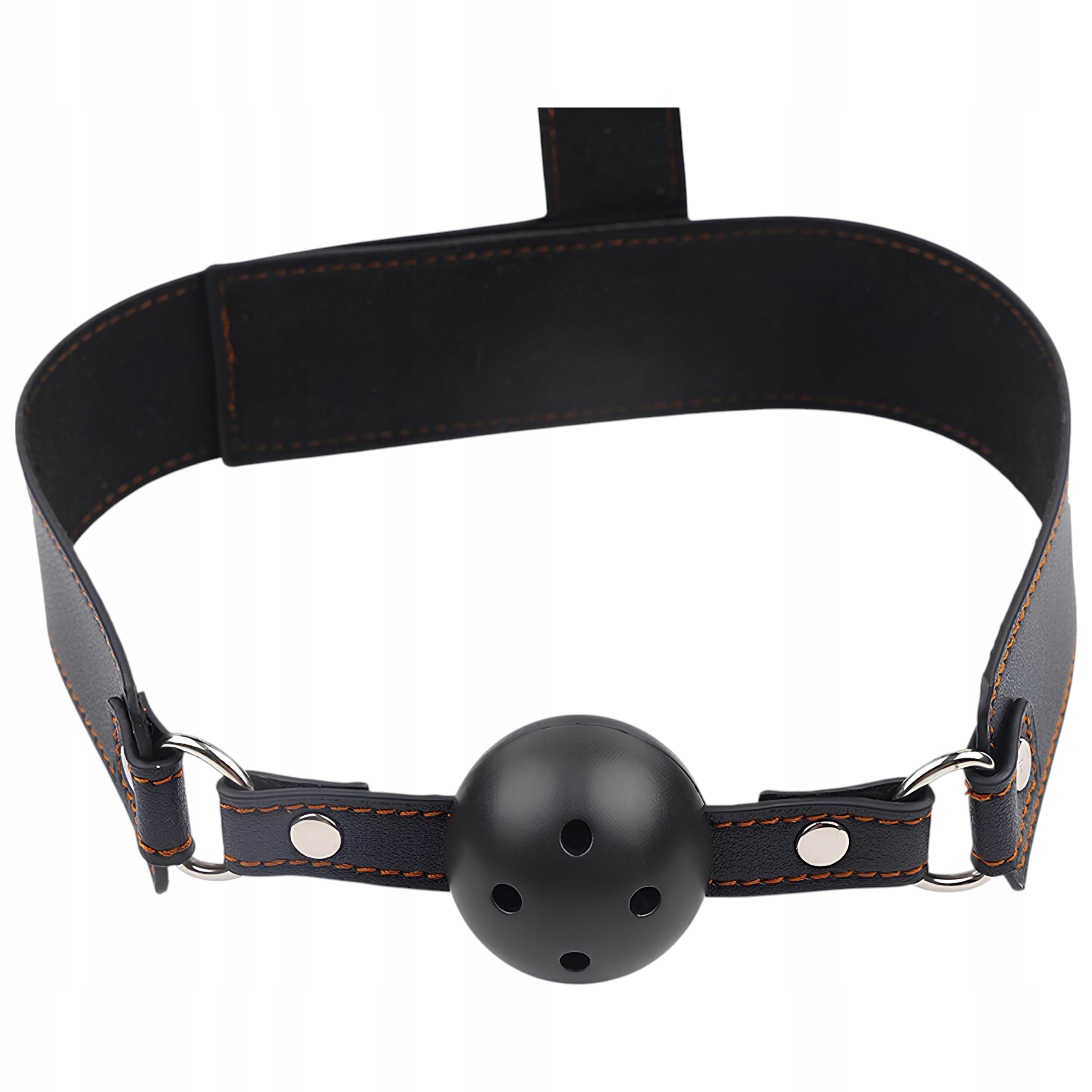 ✅ Knebel kulowy – oddychający (otwory wentylacyjne), regulowany pasek z eko-skóry