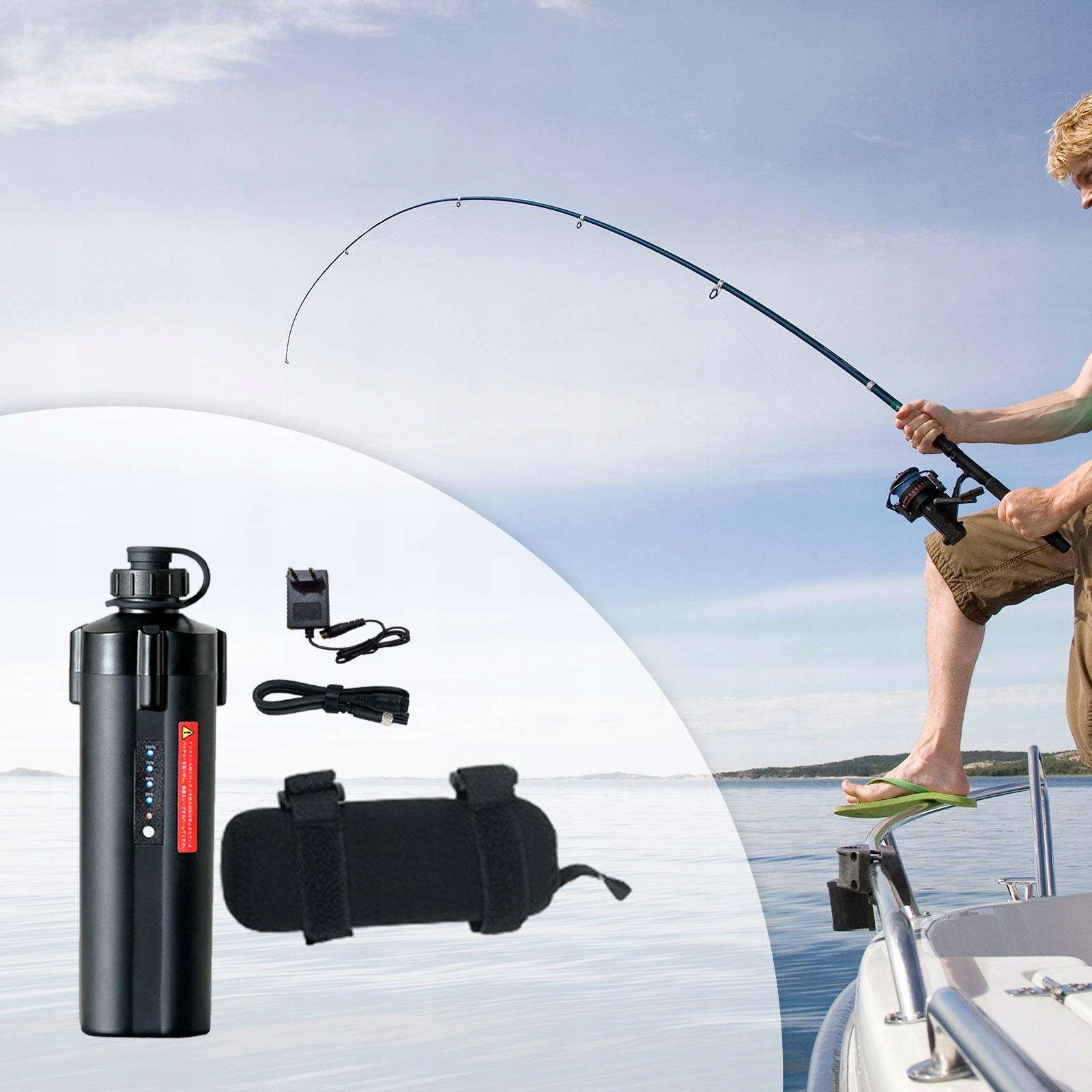 [Kompletny pakiet]: Opakowanie zawiera elektryczne akumulatory kołowrotka wędkarskiego, kompatybilną ładowarkę (wtyczkę EU), kabel adaptera 40 cm i pokrowiec na ściereczkę