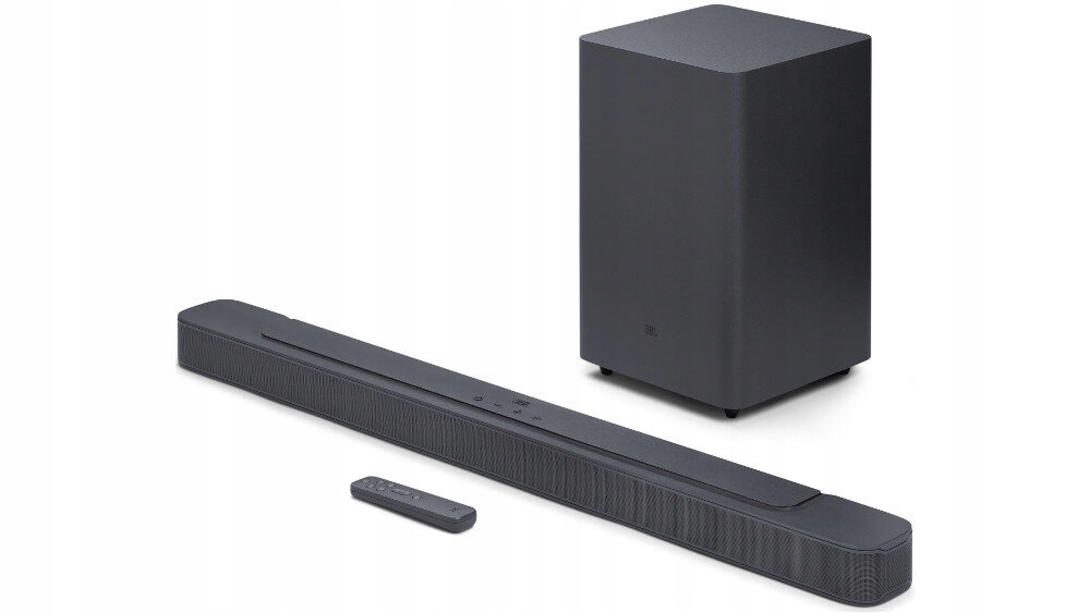 Soundbar JBL Bar 2.1 2.1 Deep Bass jest bezprzewodowym urządzeniem, które możesz łączyć z innymi urządzeniami za pomocą funkcji Bluetooth. Urządzenie ma potężną moc całkowitą do 300 W i jest zintegrowane z jednostką centralną.