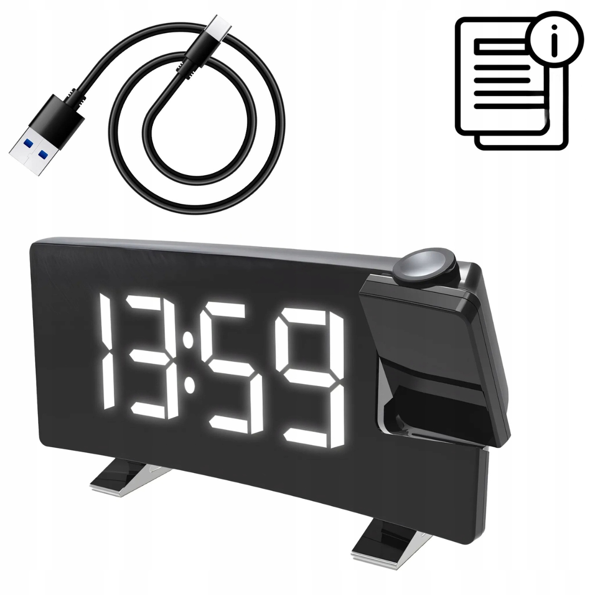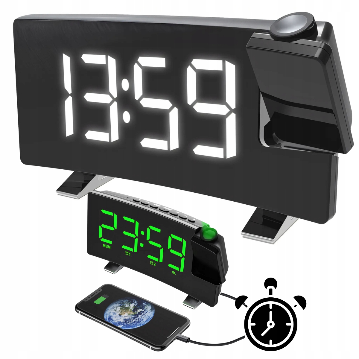 ZEGAR BUDZIK RADIOBUDZIK Z PROJEKTOREM CZARNY USB GŁOŚNY WYŚWIETLACZ XL LED
