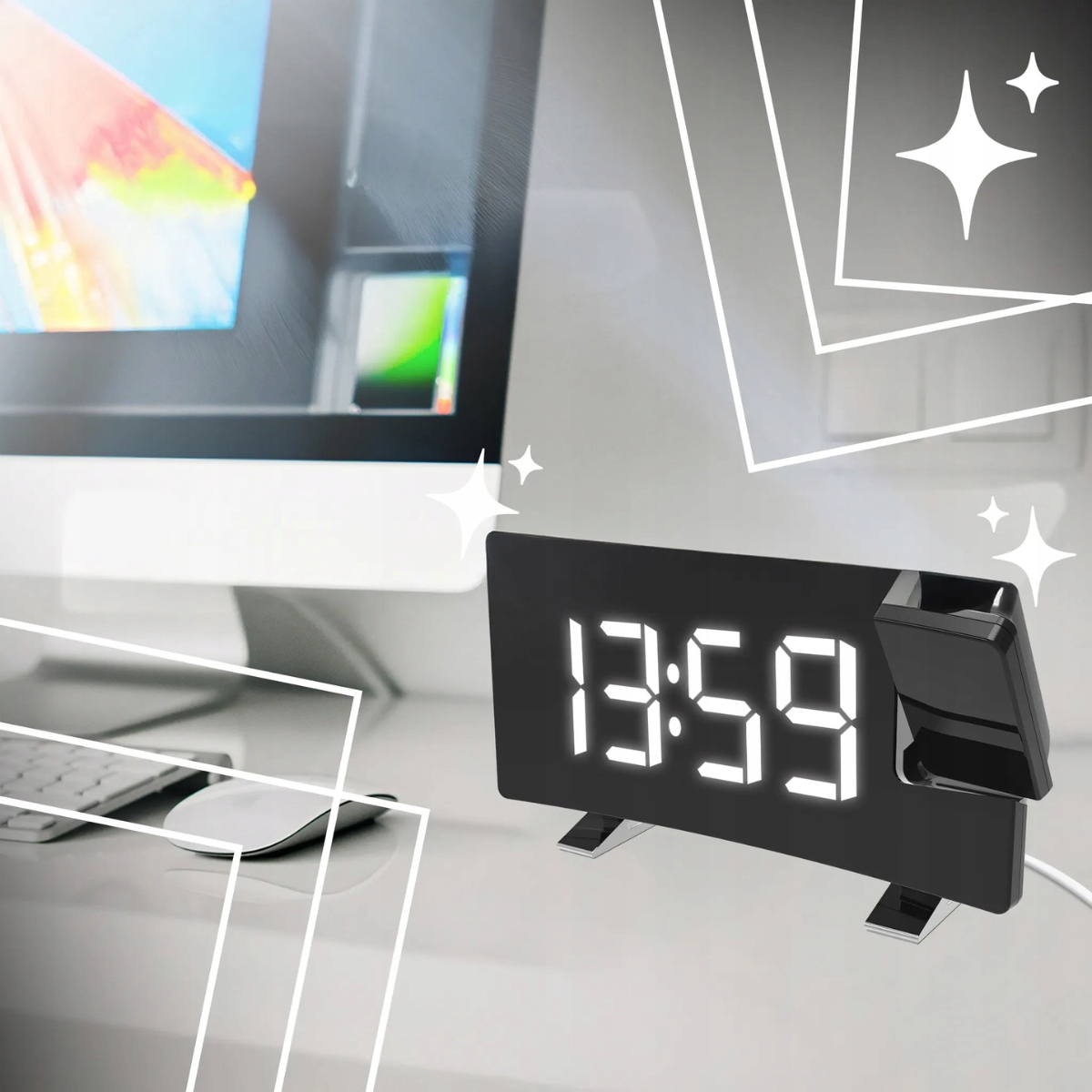 Nowoczesny radiobudzik z dużym, zakrzywionym wyświetlaczem LED i funkcją projekcji godziny to idealne rozwiązanie do sypialni. Dzięki możliwości wyświetlania aktualnego czasu na ścianie lub suficie, czytelnemu ekranowi z regulacją jasności oraz funkcji budzenia radiem, zapewnia wygodę użytkowania i estetyczny wygląd w każdym wnętrzu. Budzik posiada 10-stopniową regulację głośności, co sprawia, że bez problemu dopasujesz poziom dźwięku do swoich preferencji.