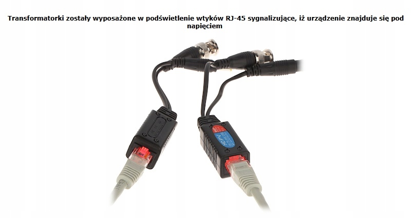 TRANSMISJA WIDEO + ZASILANIE DO KAMER PO SKRĘTCE UTP ZŁĄCZKA DO KAMERY KOMPLET TR-1RJ-HD*P2