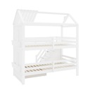 WYSOKIE BEZPIECZEŃSTWO: Łóżka piętrowe wytrzymują do 400 funtów każde i są wykonane z wytrzymałego drewna sosnowego i materiałów MDF, aby zapewnić stabilność i trwałość łóżek. Poręcz zwiększa bezpieczeństwo i zapobiega spadnięciu dzieci z piętra.