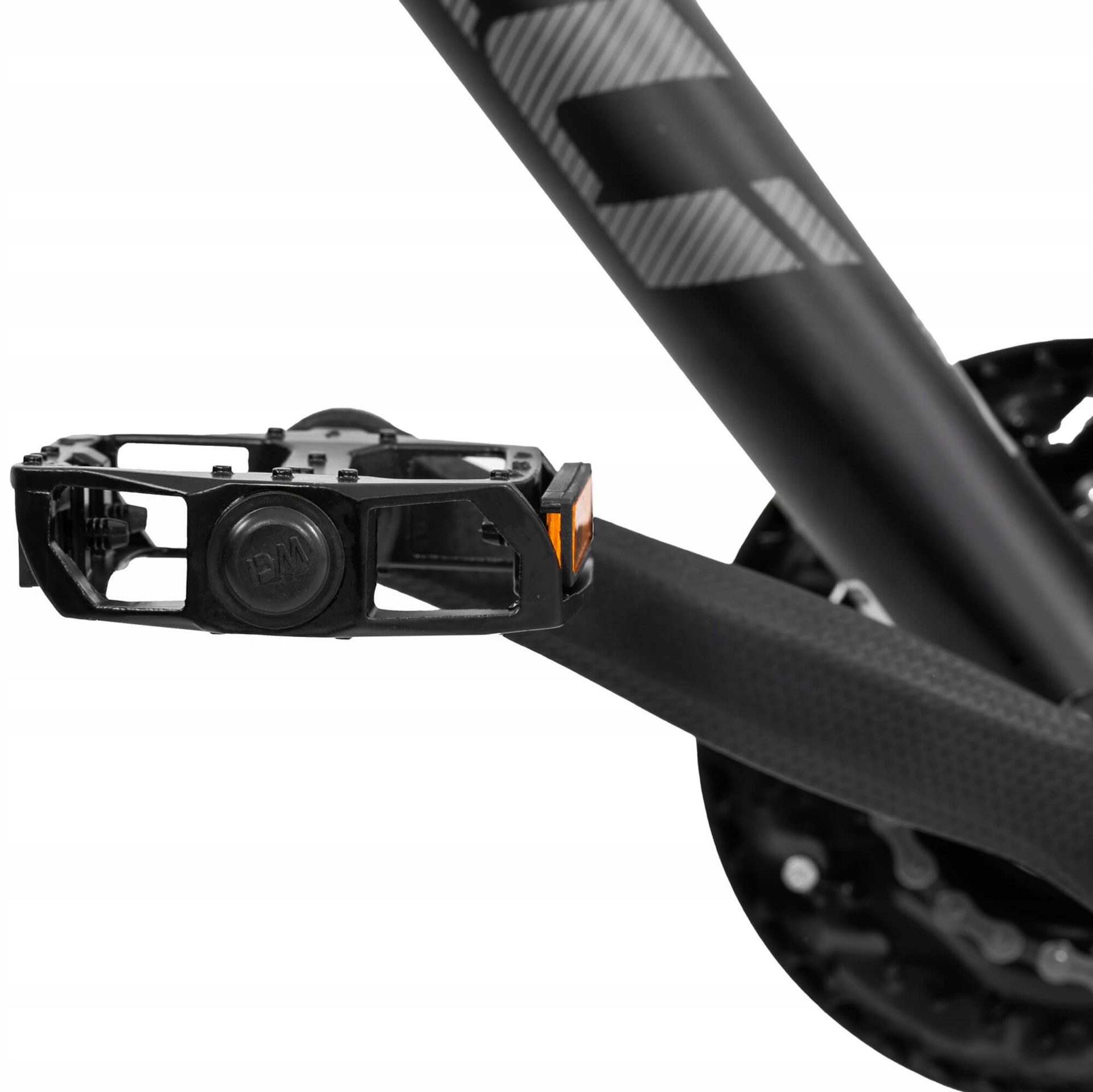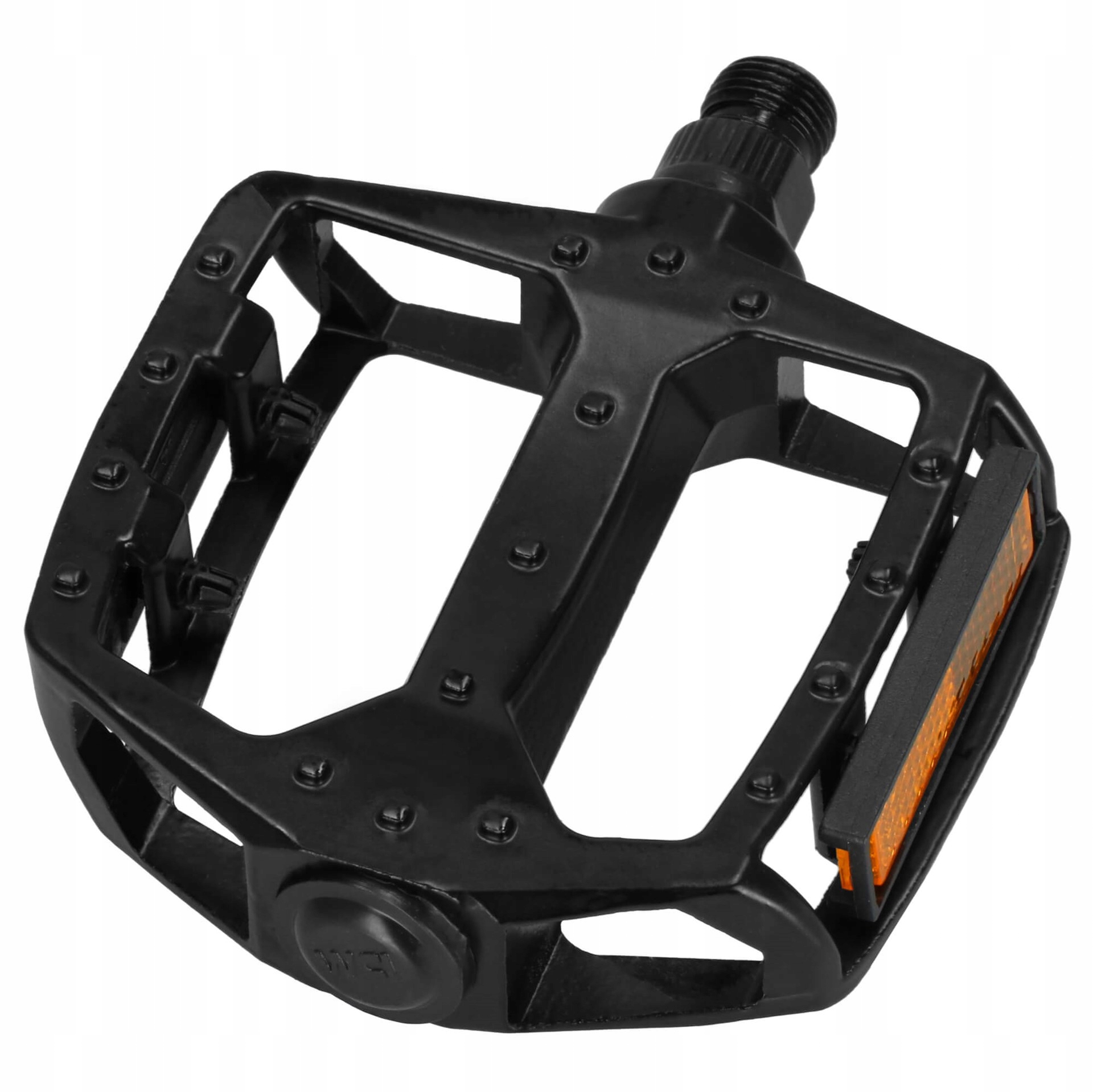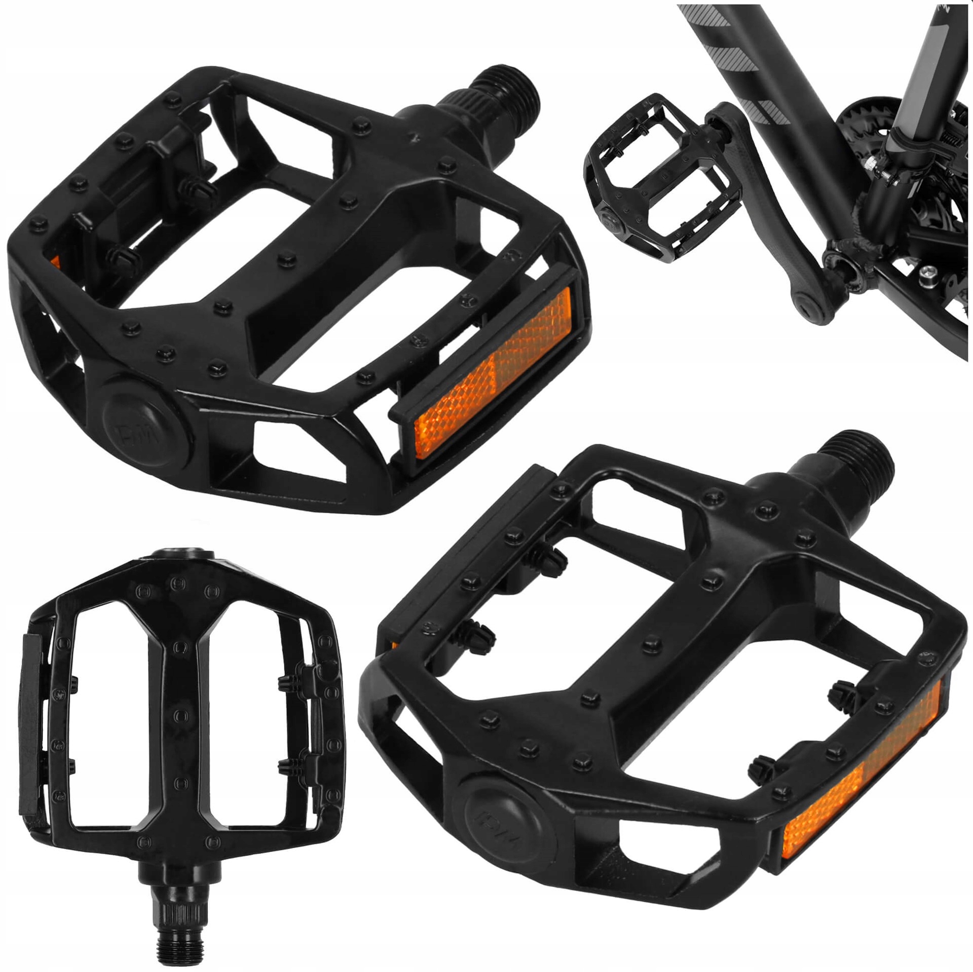 Dzięki antypoślizgowej powierzchni pedały gwarantują pewne trzymanie stopy, co jest niezwykle ważne przy dynamicznej jeździe. Dodatkowo, wbudowane odblaski w kolorze pomarańczowym zwiększają widoczność rowerzysty po zmroku, podnosząc poziom bezpieczeństwa.