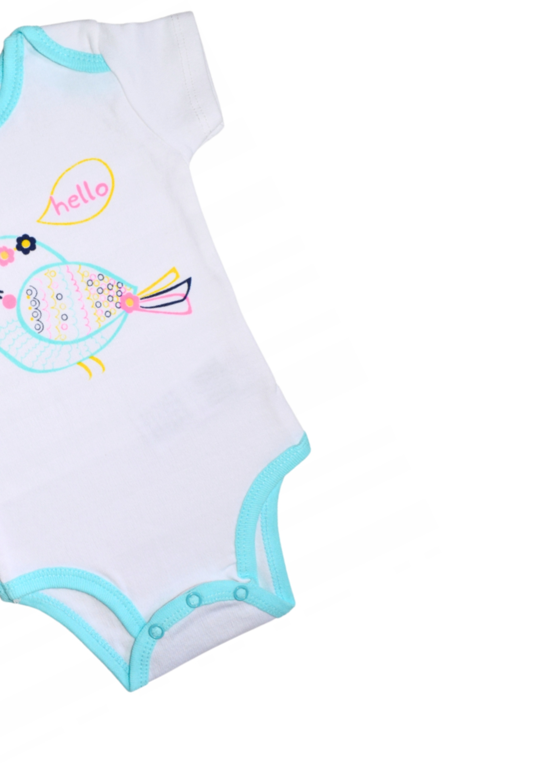 Ten kombinezon z krótkim rękawem jest wykonany z miękkiego i oddychającego materiału i ma uroczy wzór „Little Bird”. Idealny do codziennego użytku, z zatrzaskami ułatwiającymi przewijanie i miękki dla wrażliwej skóry dziecka.