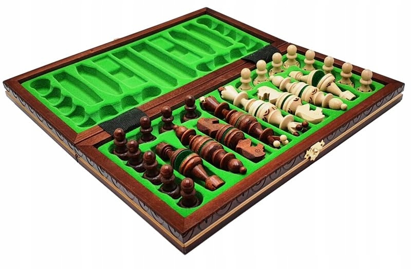 Wykonana z drewna lipowego i grabowego, ta szachownica składa się z 32 kunsztownie rzeźbionych figur, które dodają luksusowego akcentu do każdej gry. Kolor mahoniowy nadaje grze szachowej arystokratycznego wdzięku, a precyzyjne detale figur sprawiają, że gra staje się niezapomnianym doświadczeniem.