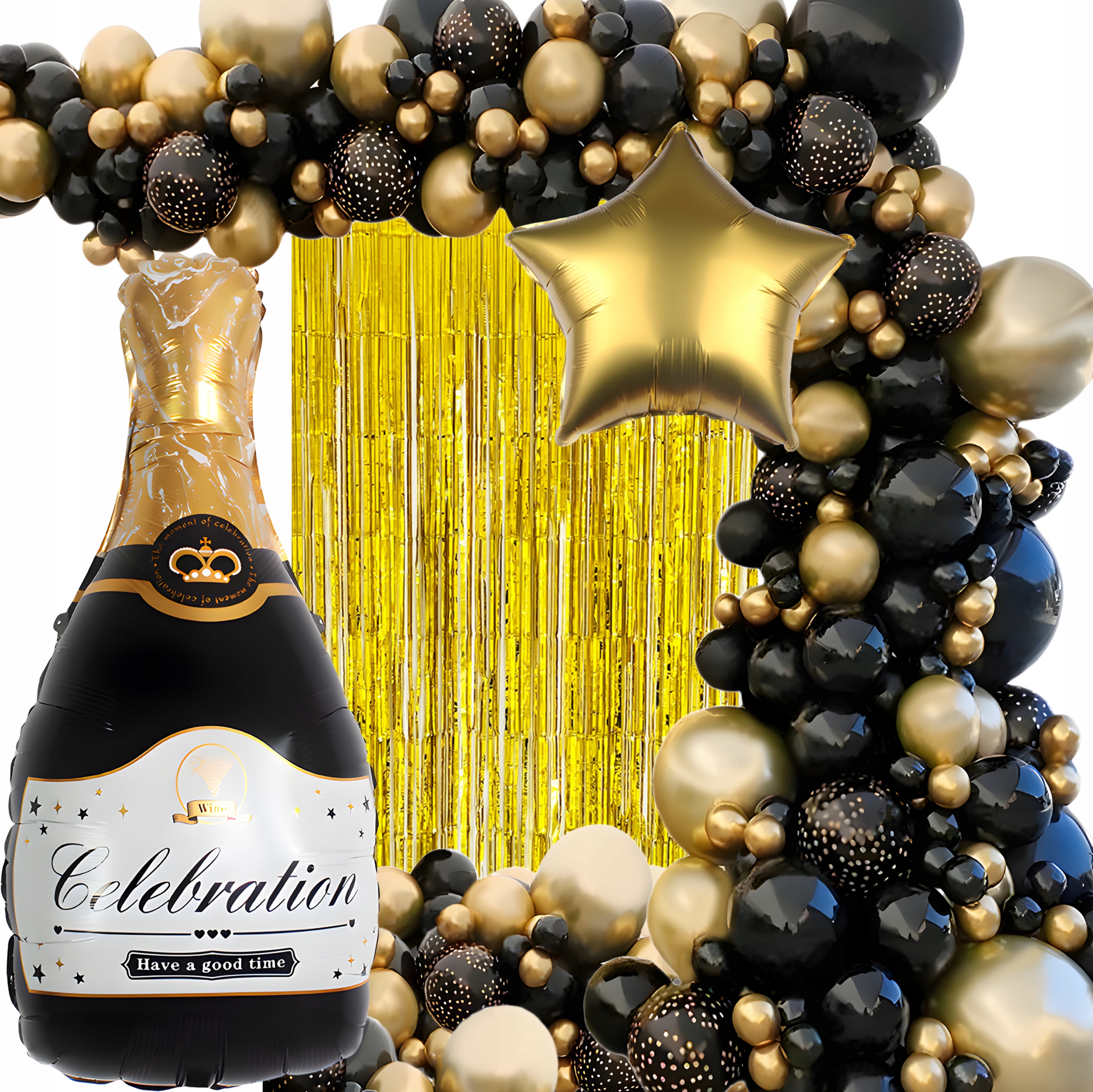 Kurtyna wyróżnia się efektownym, złotym kolorem, który nadaje pomieszczeniu niesamowity wygląd. Idealnie komponuje się z balonami i innymi dekoracjami, tworząc niezapomnianą scenerię.