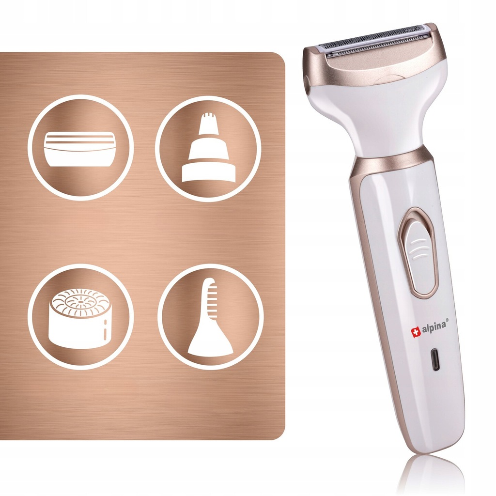 ➡️Golarka dla kobiet Alpina to wielofunkcyjne urządzenie, które pozwala na skuteczne i precyzyjne usuwanie włosków z różnych części ciała, zapewniając wygodę bezprzewodowego użytkowania i łatwe ładowanie za pomocą kabla USB.