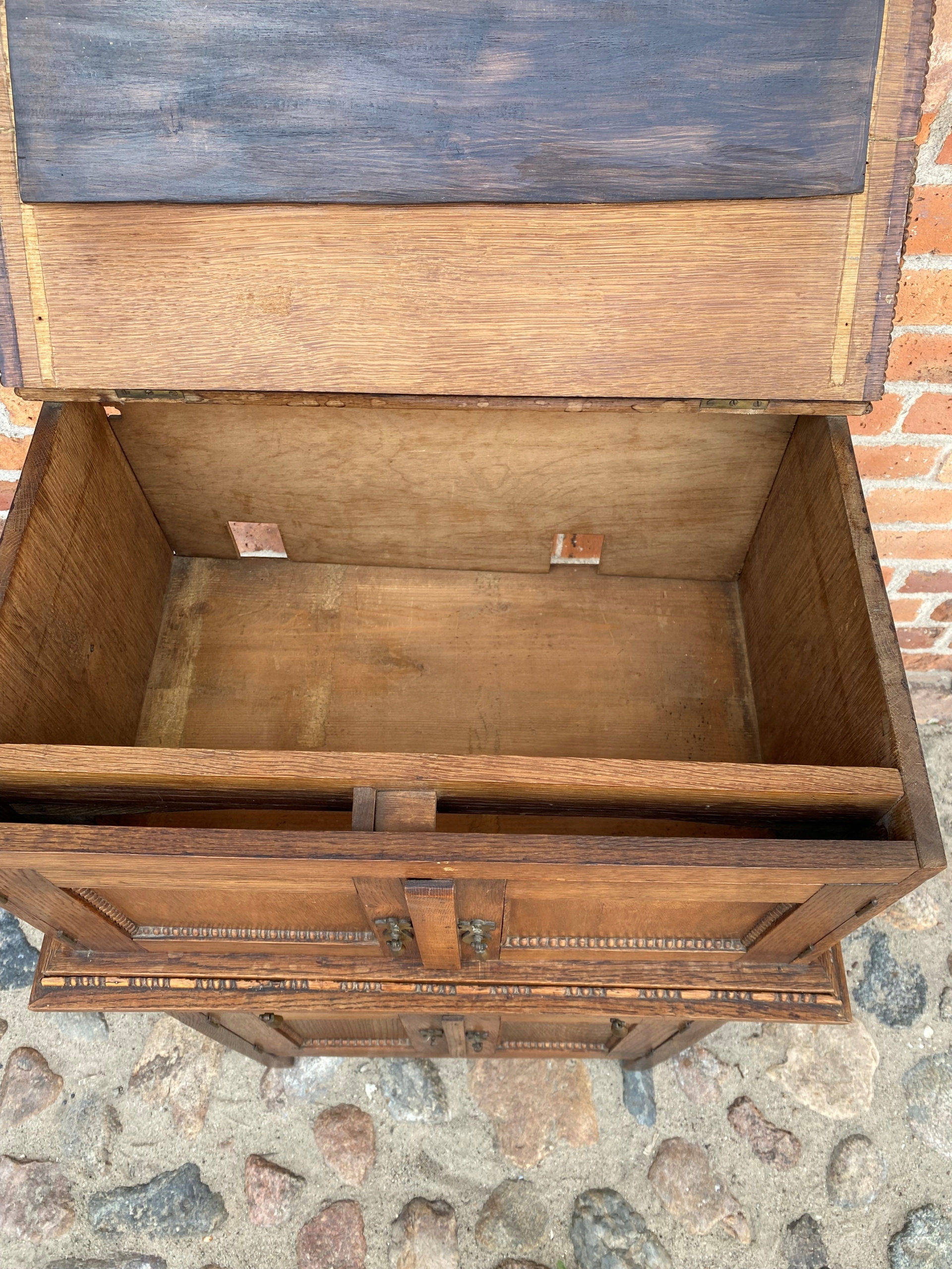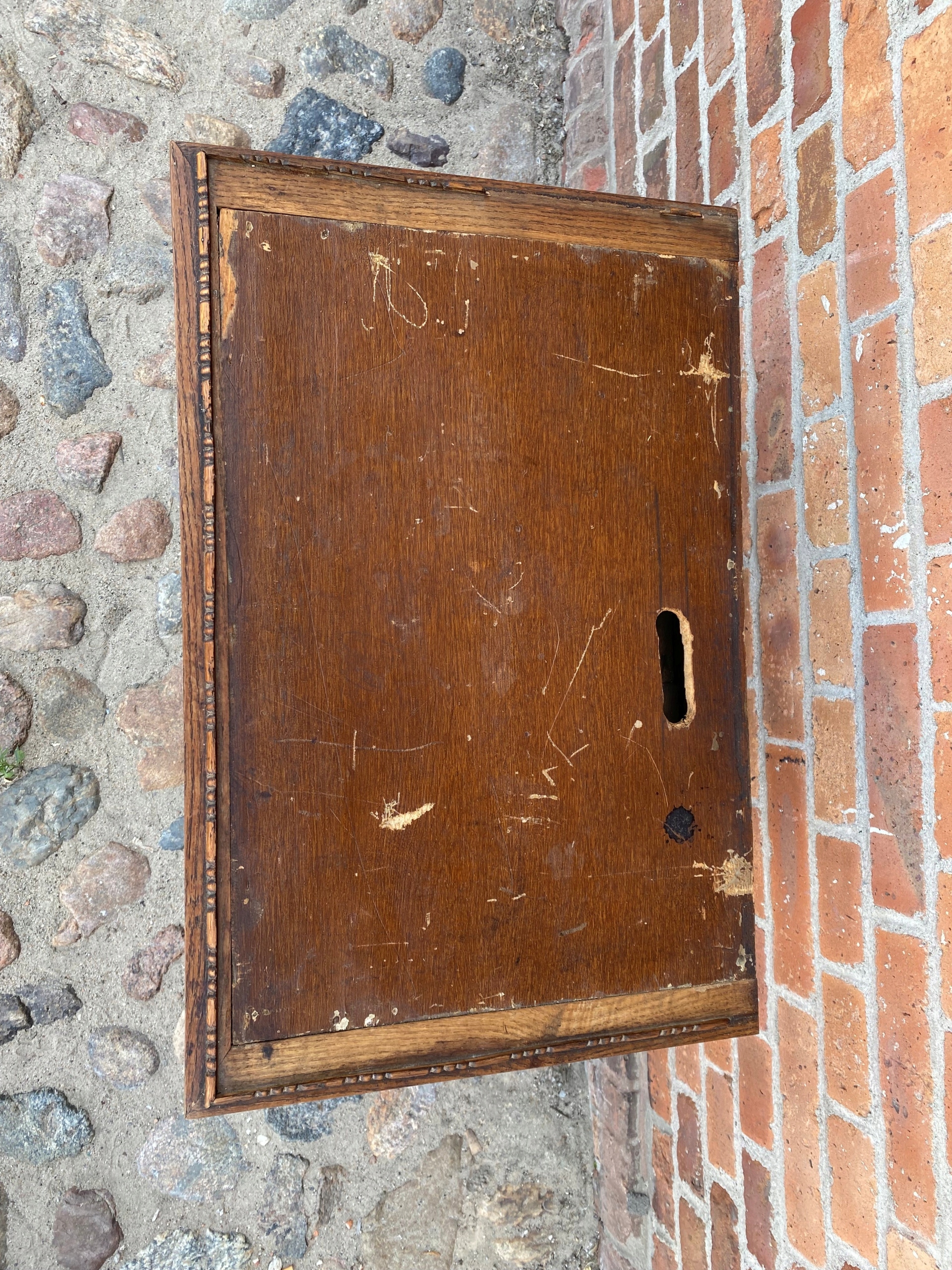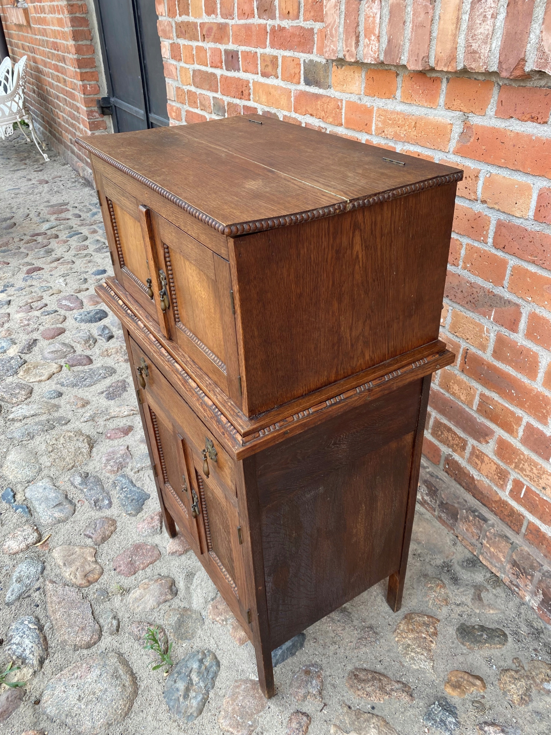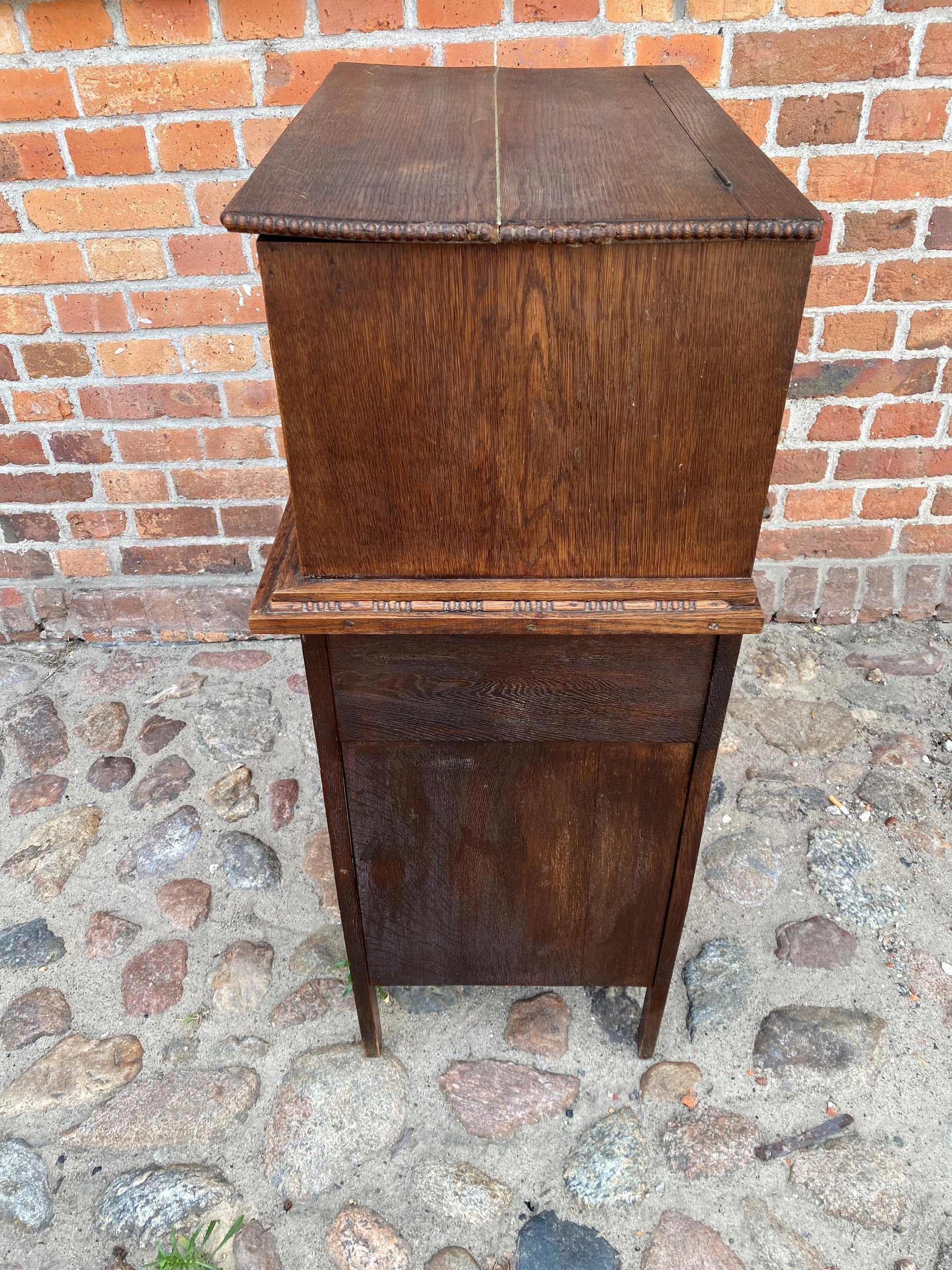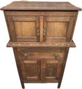 Szafka z nadstawką z I poł.XX w. Stan używany. Okleina dębowa. Była dostosowana do używania sprzętu RTV. Stan widoczny na zdjęciach. Wymiary; wys.105 x 62,5 x 41 cm. Polecam