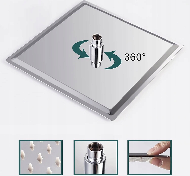 Dysze silikonowe w deszczownicy skutecznie zapobiegają osadzaniu się kamienia. Deszczownica ma funkcję regulacji możesz zmieniać jej kąt nachylenia w każdej płaszczyźnie.
