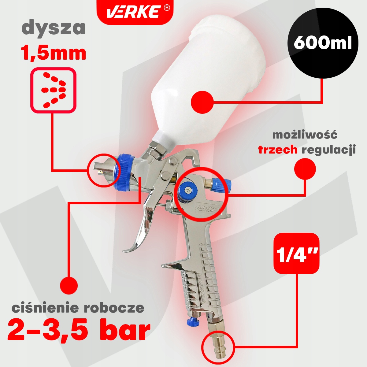 Высокое качество низкого давления пистолеты-распылители Verke HVLP отличаются профессиональным дизайном и высокой точностью в нанесение краски. Превосходное распыление, скорость в работе, эргономика и высочайшее качество исполнения это их главные козыри. Они предназначены для различных видов деятельности и - я не знаю. Высококачественная насадка и шпиль из нержавеющей стали и возможность трех регулировок они обеспечивают полный контроль над работой. Пистолеты Verke отличаются эргономичностью и легкостью рукояткой,