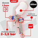 ✅ Regulacja ciśnienia i przepływu powietrza: możliwa jest precyzyjna regulacja ciśnienia roboczego w zakresie 2.0-3.5 bar. Dzięki temu można dostosować parametry pracy pistoletu do rodzaju malowanej powierzchni