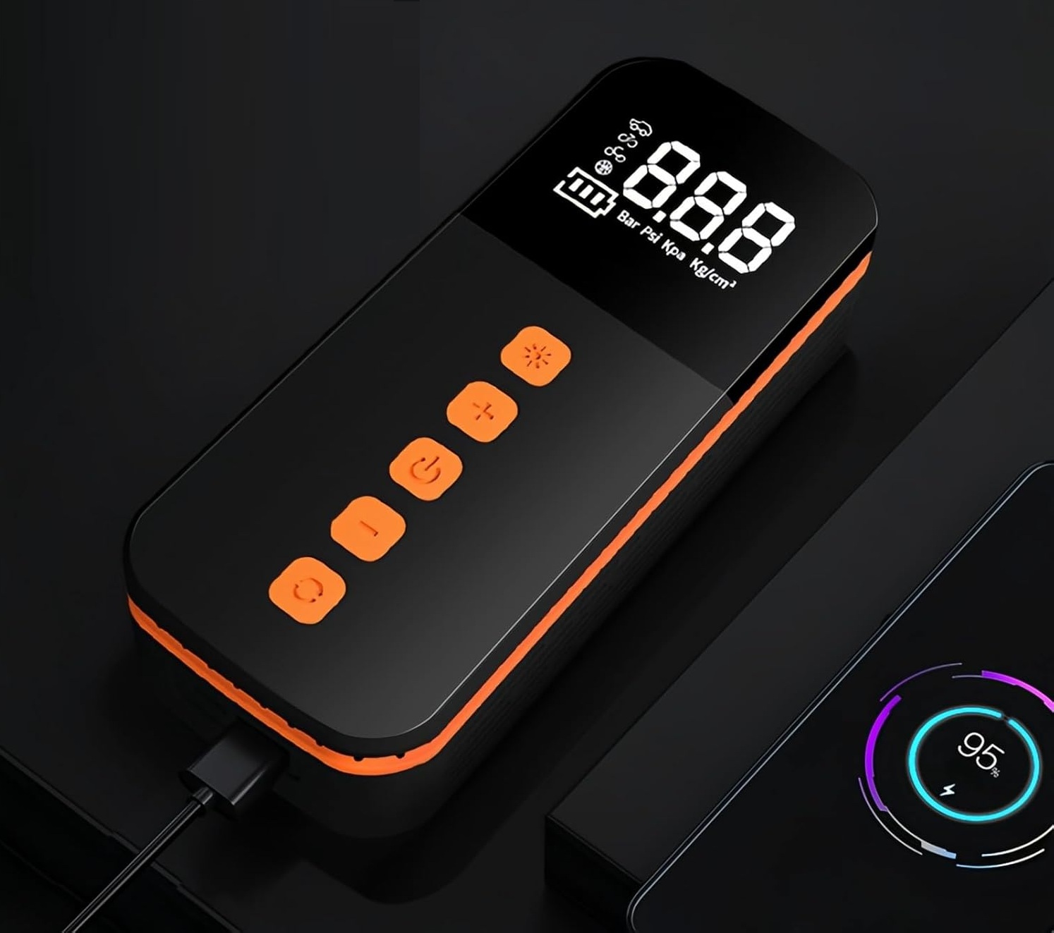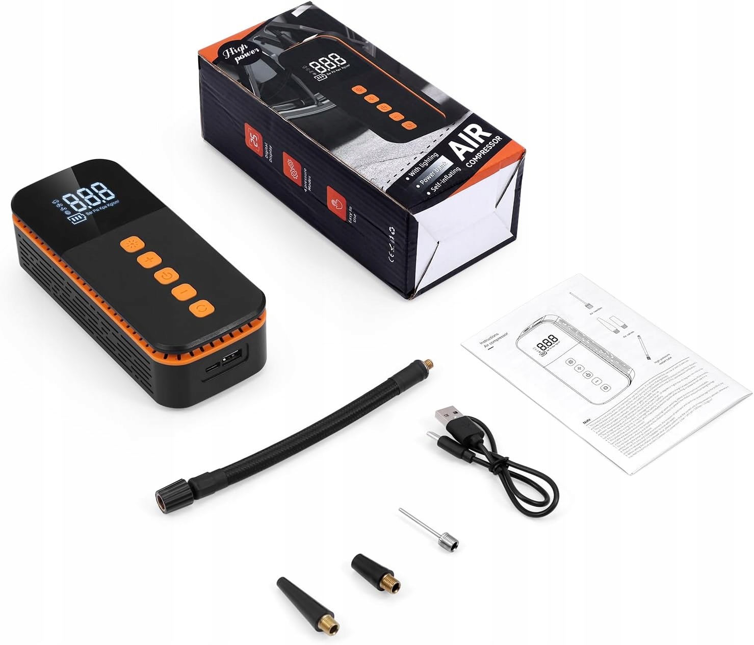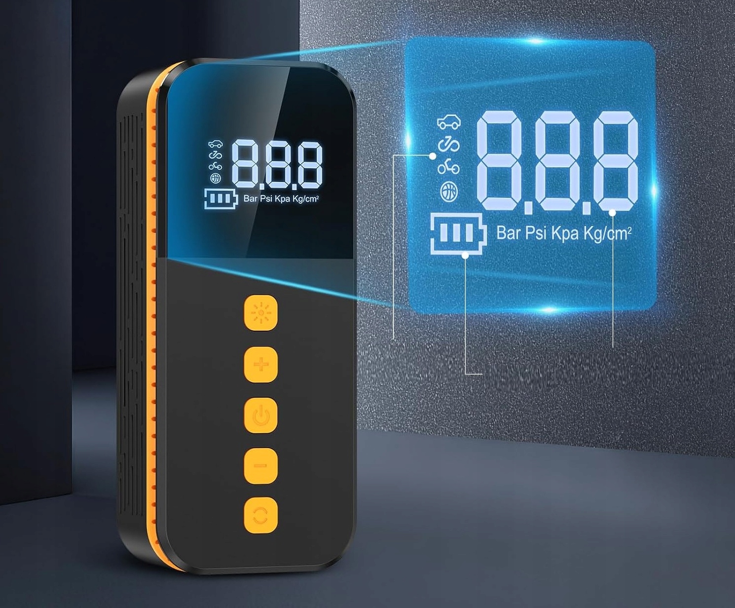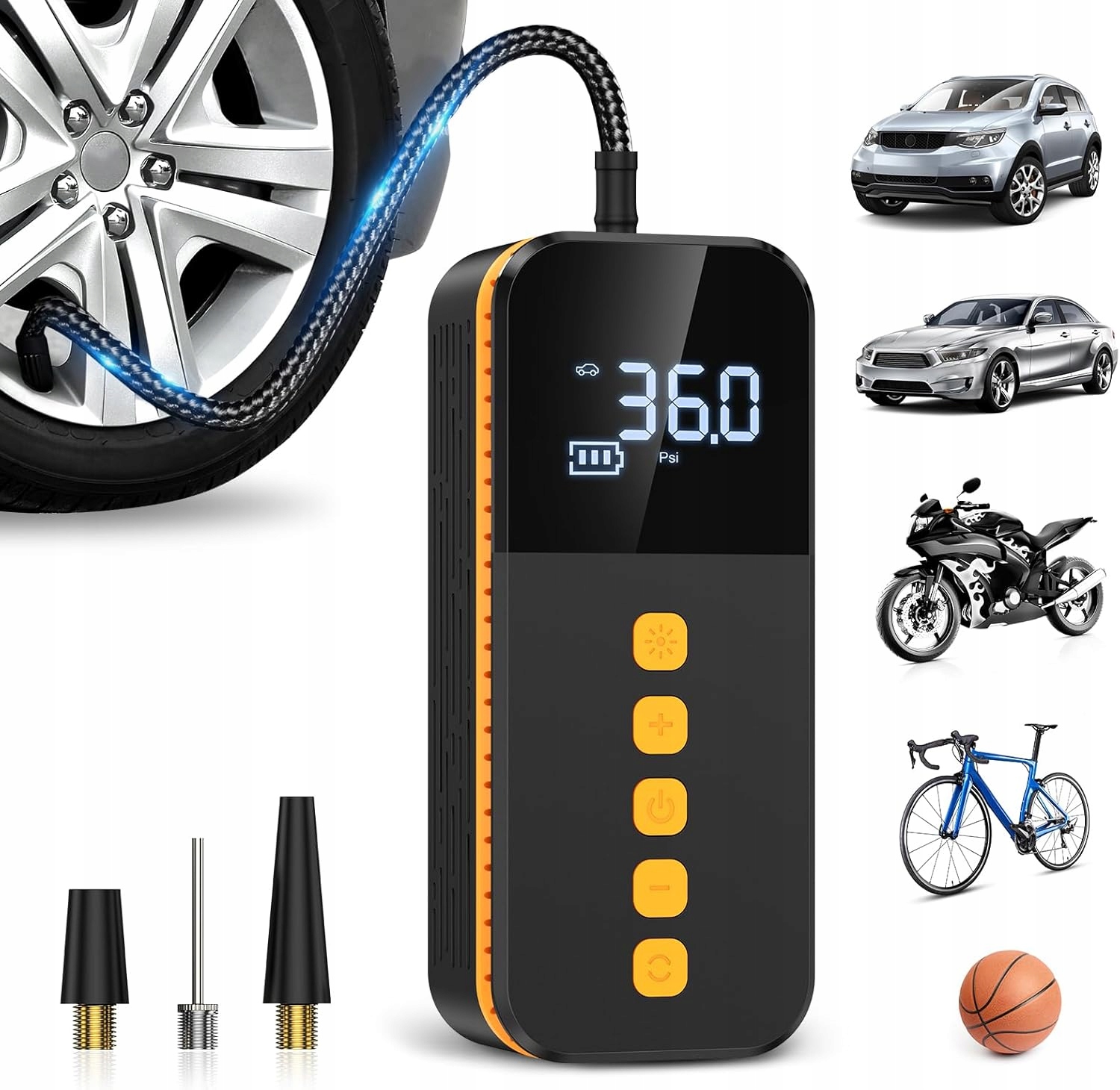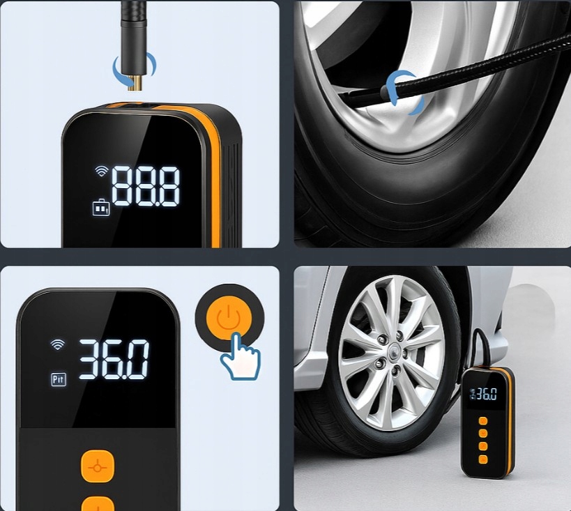 Pompka powietrza jest kompaktowa i przenośna, więc nie stanowi dużego obciążenia – niezależnie od tego, czy jest przechowywana w samochodzie, czy używana na zewnątrz.