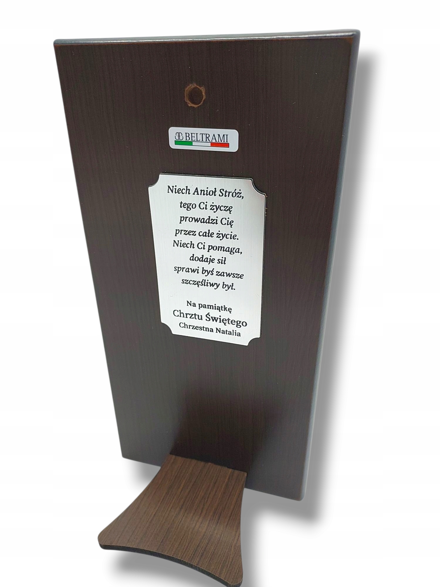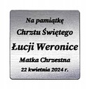 Dodaj osobistą dedykację, która sprawi, że pamiątka będzie unikalna i pełna emocji. Grawer wykonujemy na metalowej tabliczce dopasowanej do rozmiaru ramki. Do wyboru wersja srebrna (standard) lub złota.