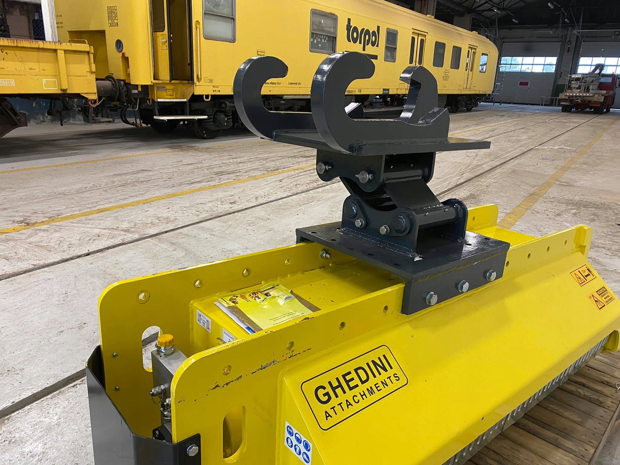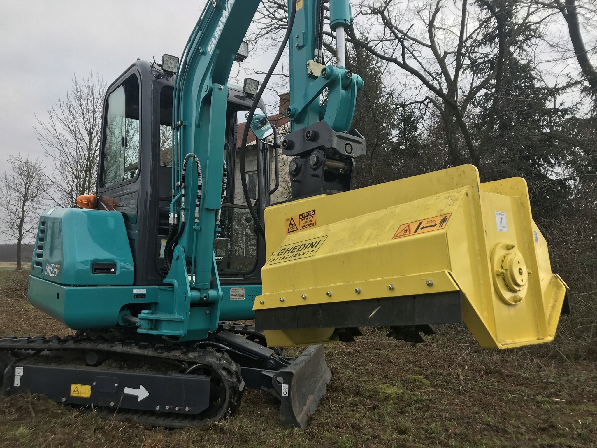 Kosiarka bijakowa zasilana z linii hydraulicznej maszyny. Producent - GHEDINI