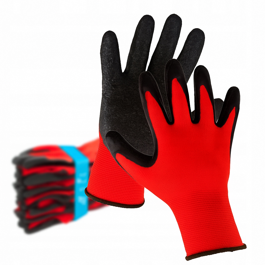 RĘKAWICE ROBOCZE OCHRONNE POWLEKANE CHROPOWATYM LATEKSEM – ZESTAW 10 PAR