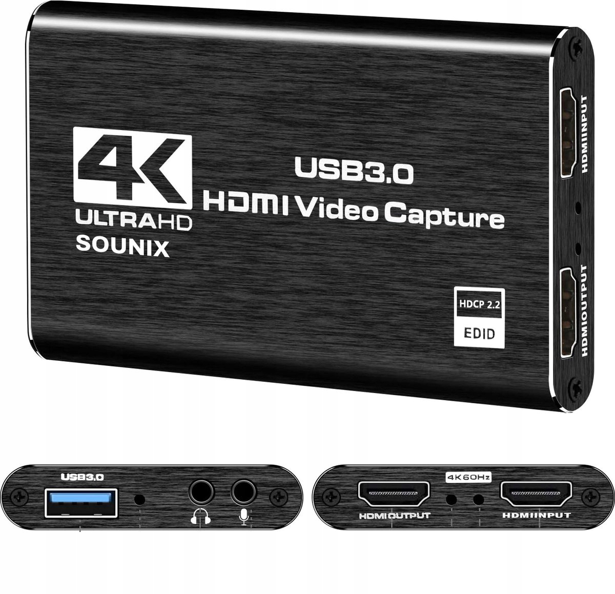 Karta przechwytywania wideo Sounix 4K HDMI – USB 3.0 Plug & Play, nagrywanie 1080P 60fps | Do przesyłania strumieniowego, gier, spotkań i przechwytywania wideo