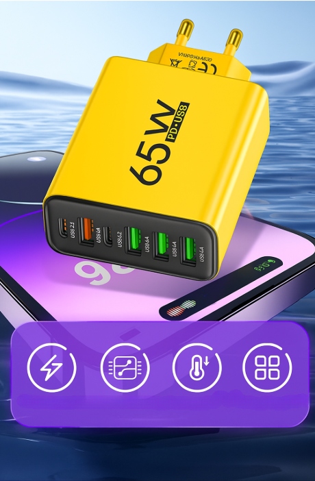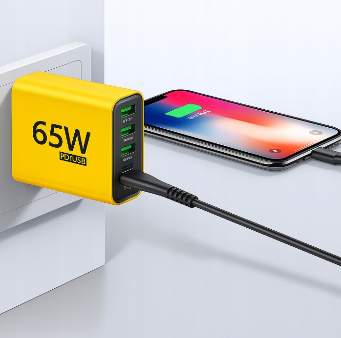 Oto ładowarka 65W PD+USB z 6 portami, która eliminuje: