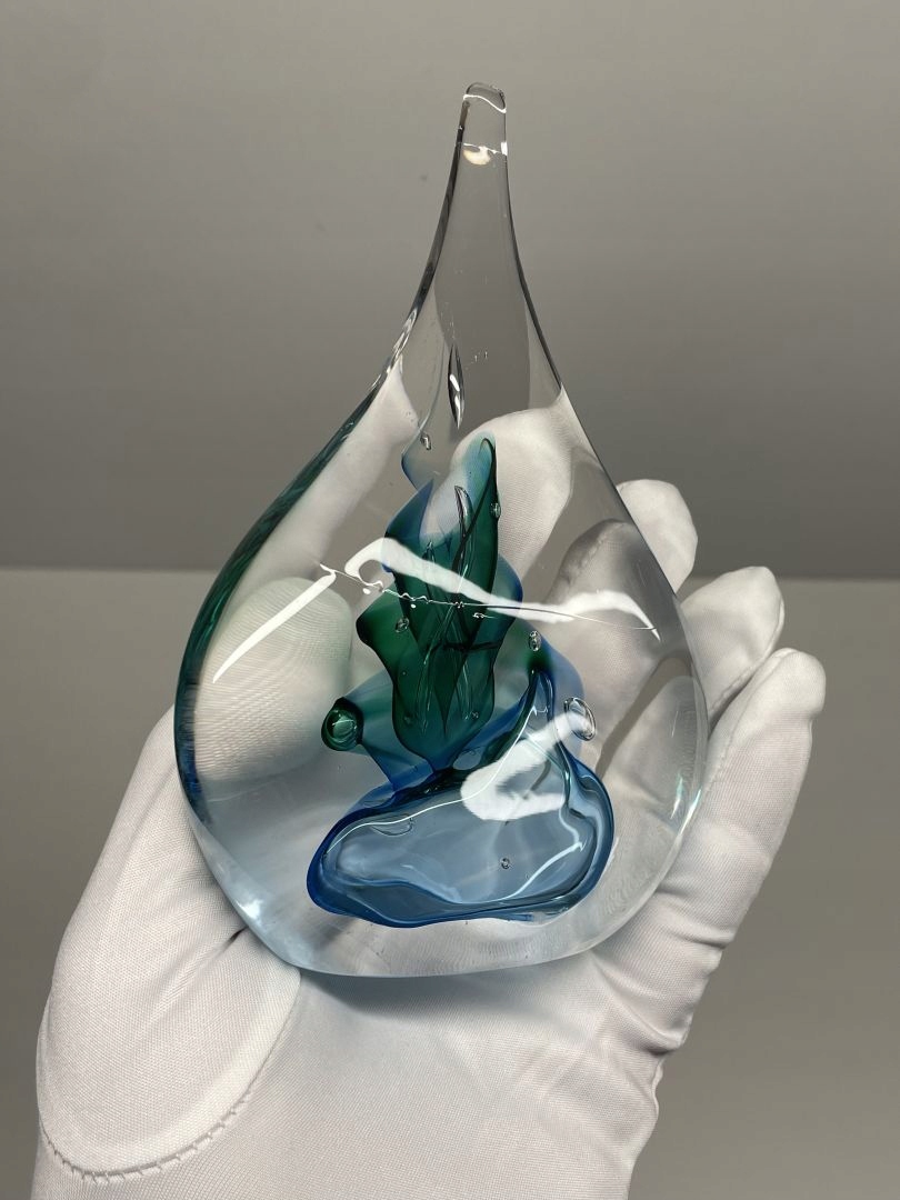 SZKLANA ŁEZKA RĘCZNIE WYKONANA Z KRYSZTAŁOWEGO SZKŁA - PRZYCISK DO PAPIERU - MARIAN PYRCAK