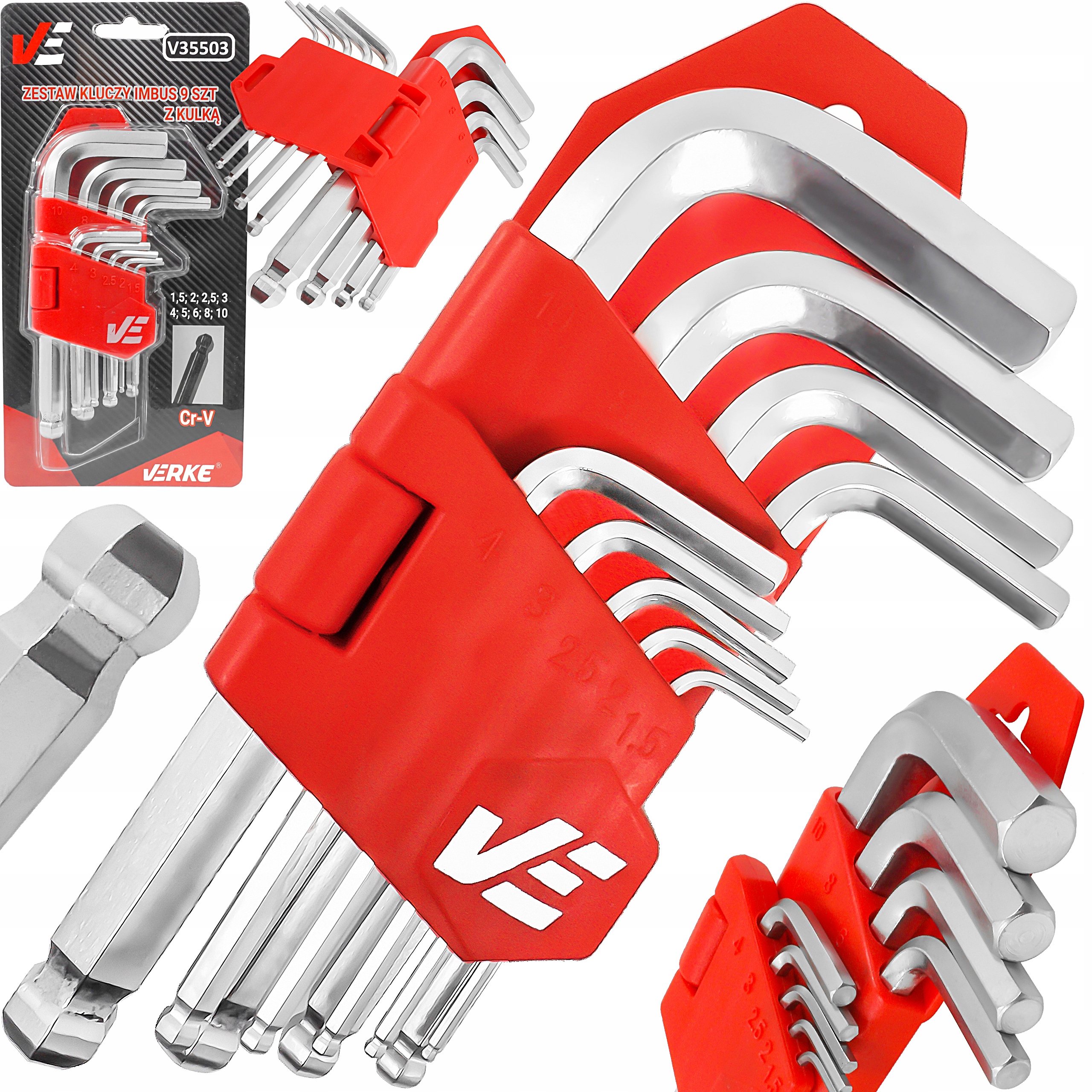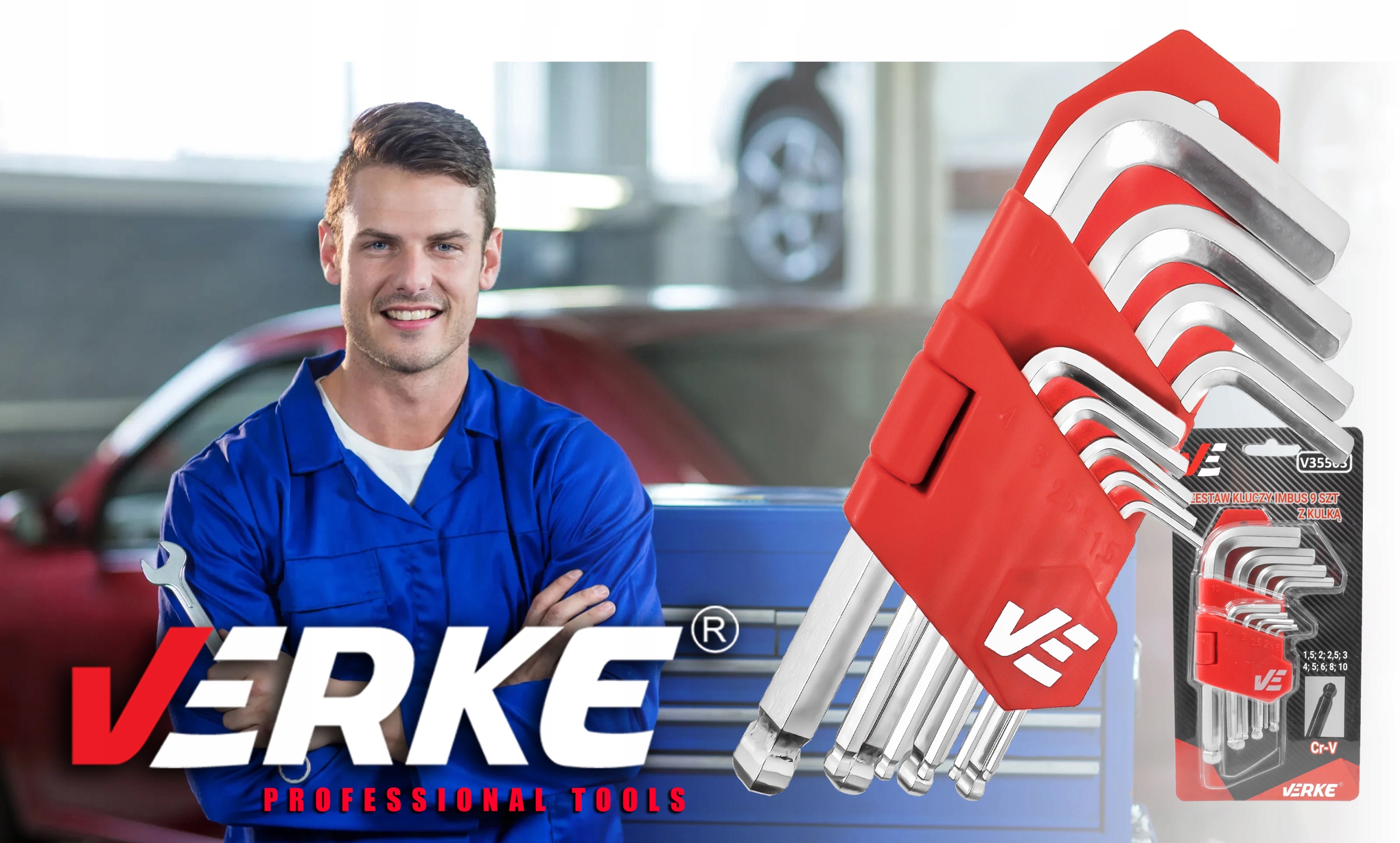 Zestaw kluczy imbusowych VERKE to niezastąpione narzędzie zarówno w profesjonalnym warsztacie, jak i domowym garażu. Dzięki precyzyjnemu wykonaniu i przemyślanej konstrukcji idealnie sprawdzi się w pracach: