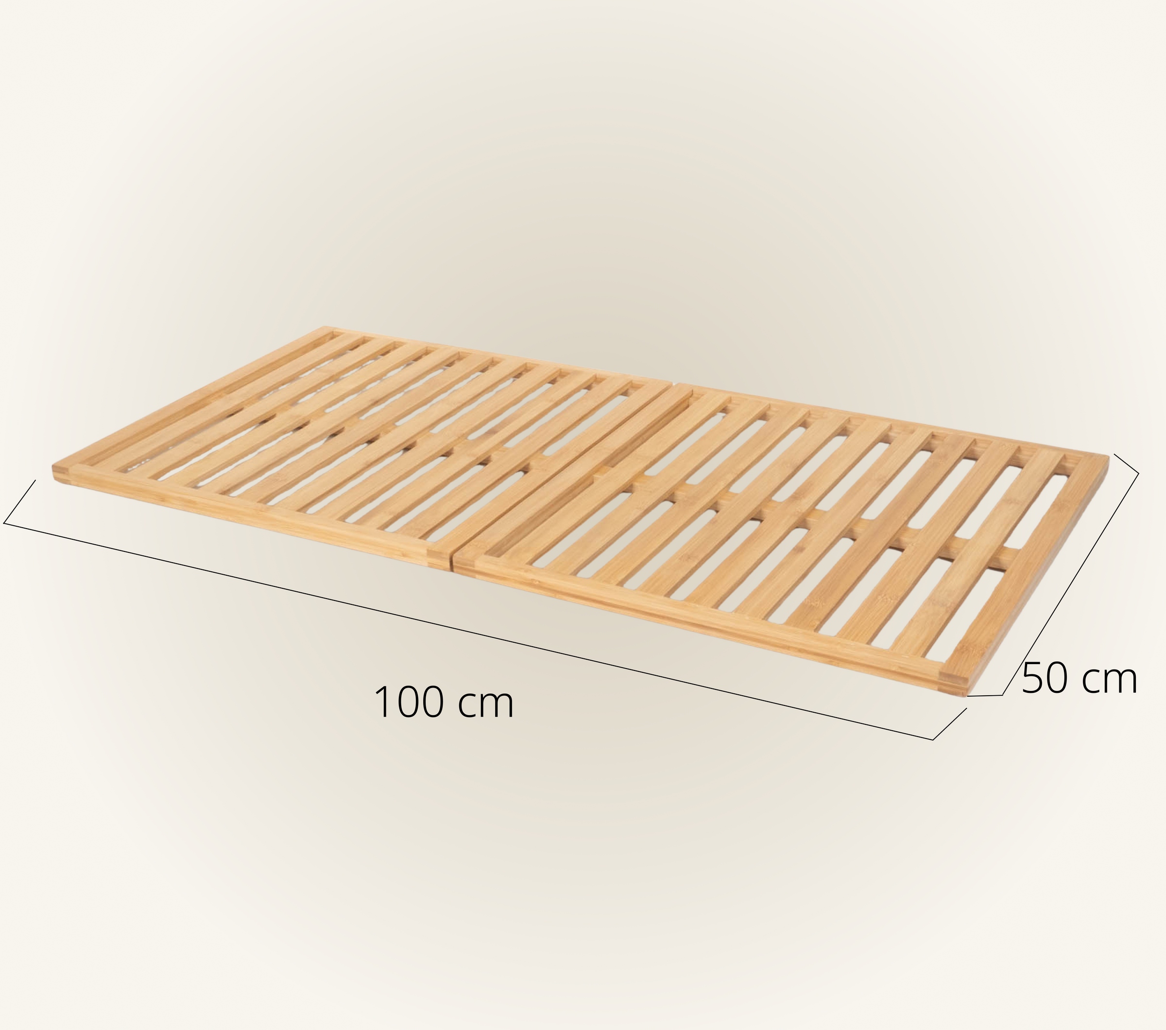 BAMBUSOWY PODEST DO ŁAZIENKI 100X50CM ROZKŁADANY Z SILIKONOWYMI PODKŁADKAMI