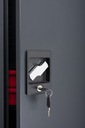 SZAFA POSIADA WYSOKIEJ JAKOŚCI ZAMEK CYLINDRYCZNY Z 3 PUNKTOWYM ZAMKNIĘCIEM ( GÓRA, ŚRODEK, DÓŁ ).