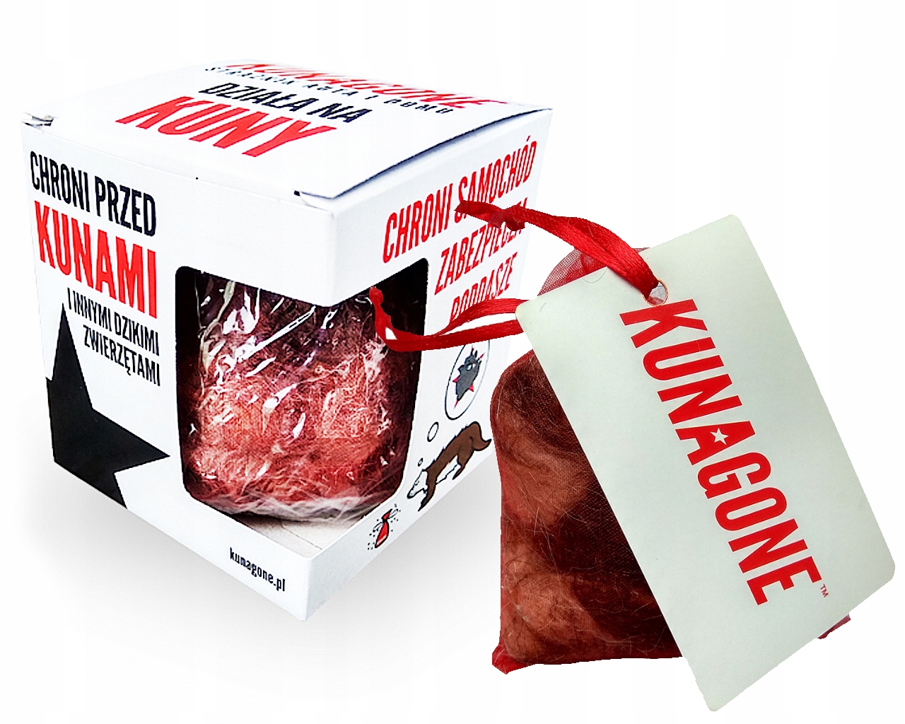 Produkt Kunagone opiera się na instynktownym zachowaniu zwierząt, które płoszy zapach ich naturalnych wrogów. Swoje działanie zawdzięcza wyselekcjonowanej podczas badań i testów, mieszance włosia kilku psów szczególnych ras. Aby podbić zapach naturalnego wroga, całość jest poddana obróbce termicznej, podczas której dodane są kolejne substancje pobudzające u kuny bodźce odstraszające. Dla maksymalnego przedłużenia działania Kunagone, obróbka termiczna wykonywana jest z udziałem wosku roślinnego. Wosk akumuluje i utrzymuje zapach, aby zbyt szybko się nie ulotnił.
