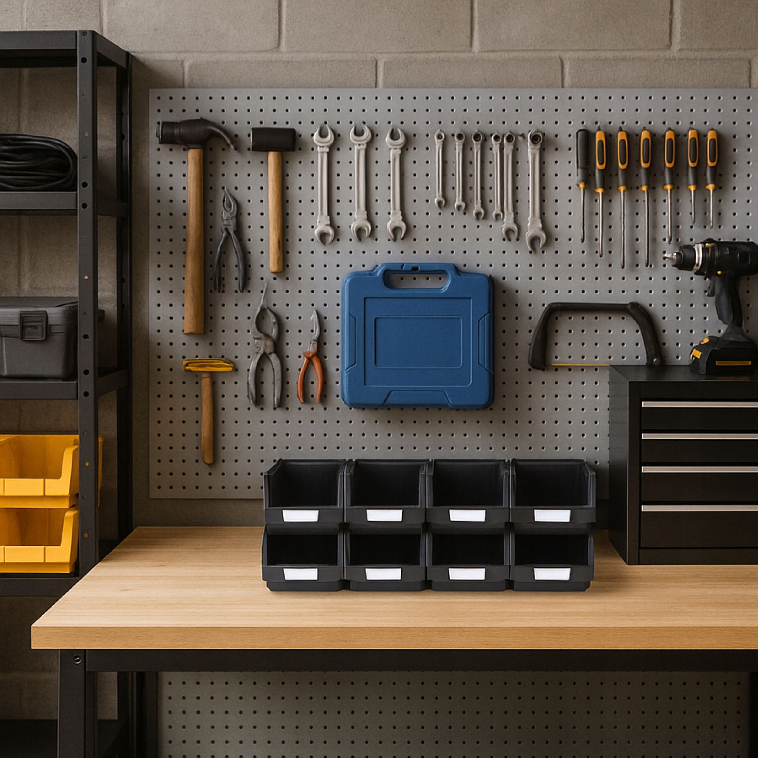 Zamiast trzymać wszystkie narzędzia w jednym dużym pojemniku, podziel je na kategorie – np. narzędzia ręczne (młotki, wkrętaki), elektronarzędzia, akcesoria (wkręty, nakrętki, śruby). Dzięki temu łatwiej będzie znaleźć to, czego szukasz.