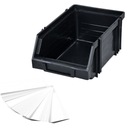 Pojemnik został wyposażony w dedykowane miejsce na etykietę, które umożliwia łatwe opisanie i oznaczenie zawartości. Dzięki temu rozwiązaniu identyfikacja przechowywanych przedmiotów staje się szybka i wygodna, co znacząco ułatwia organizację i zarządzanie przestrzenią.