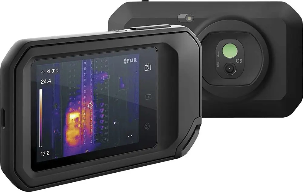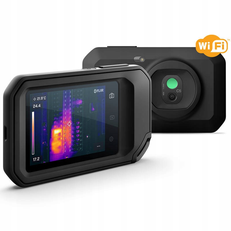 Kompaktowa kamera termowizyjna FLIR C5 jest niezbędnym narzędziem do inspekcji budynków, konserwacji systemów, HVAC / R, napraw elektrycznych i innych zastosowań służących do rozwiązywania problemów. Wydajny FLIR C5 jest wyposażony w kamerę termowizyjną, wizualną kamerę inspekcyjną i latarkę LED, tym samym ułatwiając identyfikację ukrytych problemów. Zintegrowana łączność z chmurą FLIR Ignite™ umożliwia przesyłanie, przechowywanie i tworzenie kopii zapasowych danych, dzięki czemu obrazy są zawsze dostępne na wszystkich urządzeniach. Wbudowany, 3.5 calowy ekran dotykowy jest łatwy w użyciu, dzięki czemu można szybko przeprowadzać kontrole, tworzyć dokumenty napraw i udostępniać dowody klientom. Mając FLIR C5 w kieszeni, zawsze możesz znaleźć gorące bezpieczniki, wycieki powietrza, problemy z instalacją wodną itd.