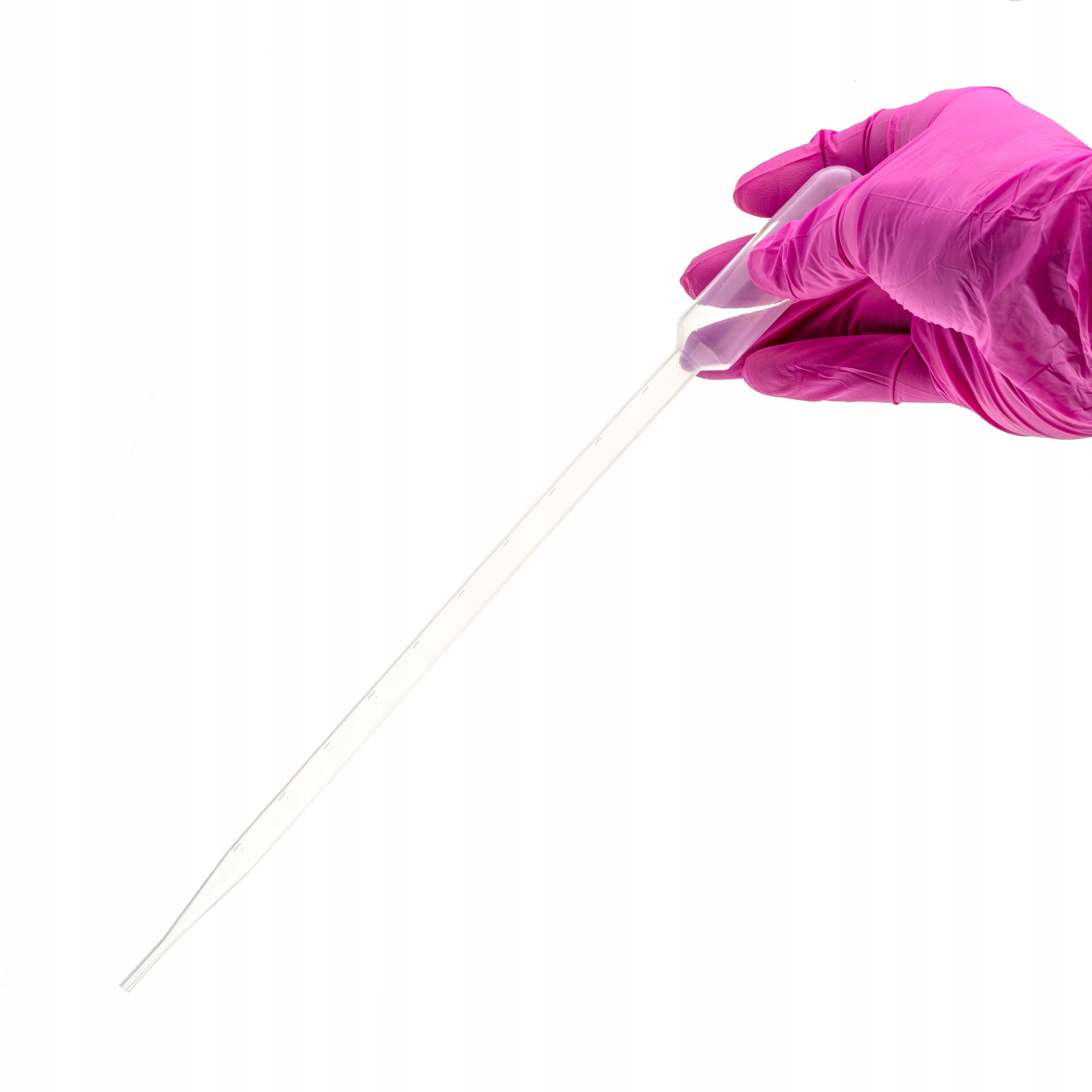 Pipeta Pasteura wykonana z miękkiego, półprzezroczystego polietylenu (PE). Umożliwia precyzyjne pobieranie i dozowanie cieczy z wąskich pojemników. Wyraźna podziałka co 1,0 ml ułatwia odczyt objętości, a elastyczny materiał chroni przed pęknięciami.
