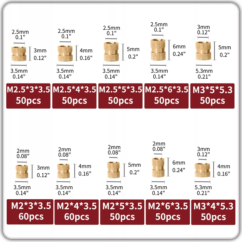 ⭐ Precyzyjnie wykonany zestaw 520 sztuk radełkowanych wkładek gwintowanych, które sprawdzą się w szerokim zakresie zastosowań.