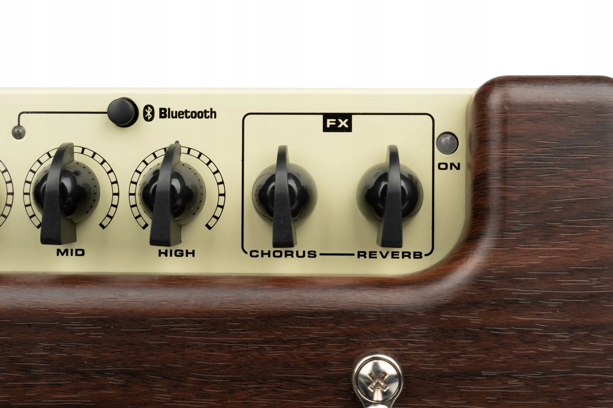 Henry's Walker ACA-25W Acoustic Combo Amplifier - przenośny wzmacniacz akustyczny o mocy 25 W w stylowym wykończeniu z ciemnego mahoniu, idealny dla gitarzystów i wokalistów w podróży. Wyposażony w dwa niezależne kanały dla gitary i mikrofonu z wbudowanymi efektami chorus i reverb, łączność Bluetooth, wysokiej jakości 6,5-calowy głośnik i do 5 godzin pracy na baterii. Kompaktowy, lekki i wszechstronny, jest idealny do buskingu, ćwiczeń i małych występów. Zamów teraz, aby podnieść poziom swoich muzycznych doświadczeń dzięki doskonałemu dźwiękowi i wygodzie.