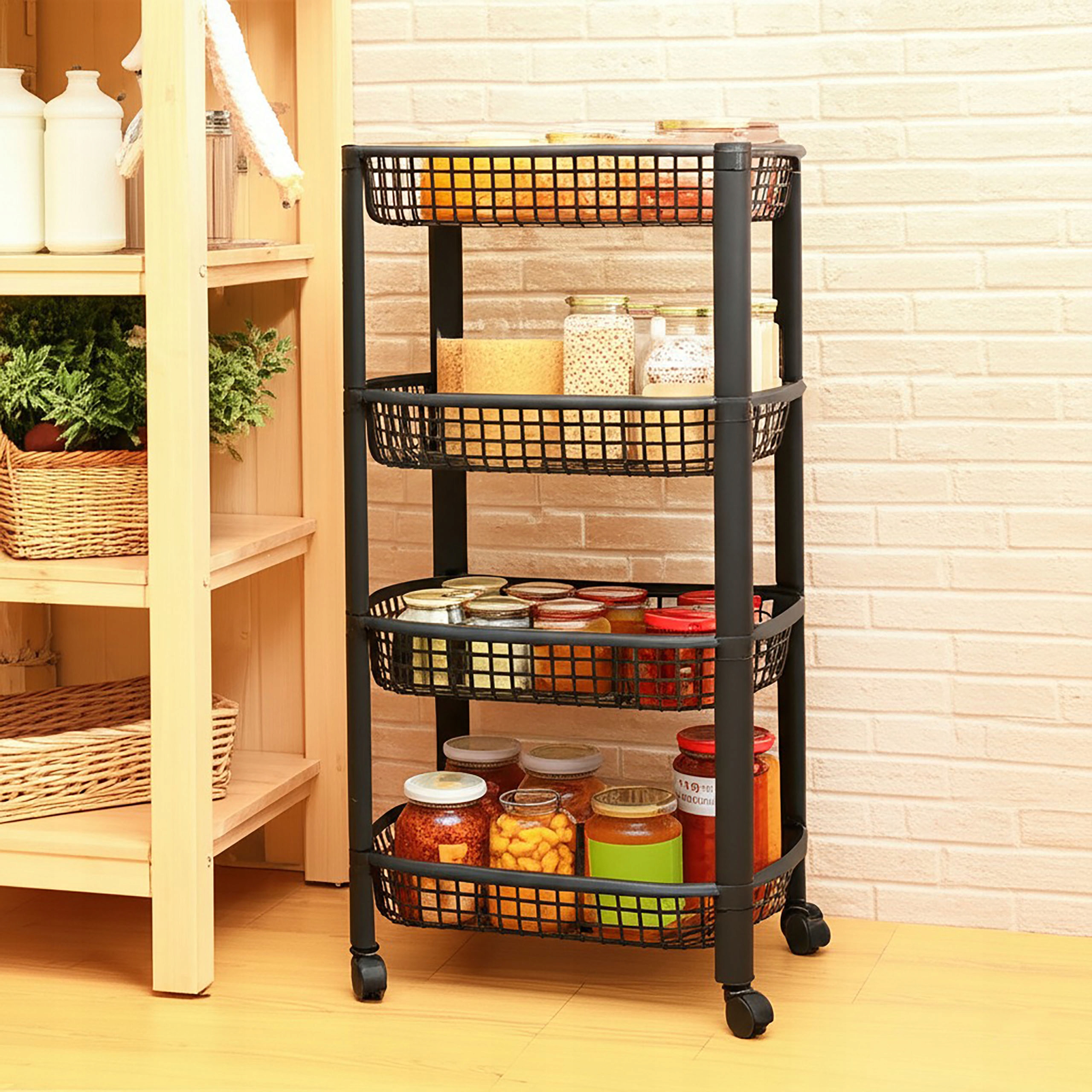 Funkcjonalny i mobilny regał na kółkach to idealne rozwiązanie do organizacji przestrzeni w każdym pomieszczeniu. Dzięki czterem pojemnym koszom i lekkiej, modułowej konstrukcji, ten regał sprawdzi się w łazience, kuchni, spiżarni czy biurze, ułatwiając utrzymanie porządku.