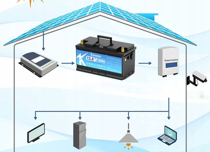 Dzięki falownikowi może zasilać urządzenia gospodarstwa domowego, takie jak telewizory, lodówki, oświetlenie, komputery itp.