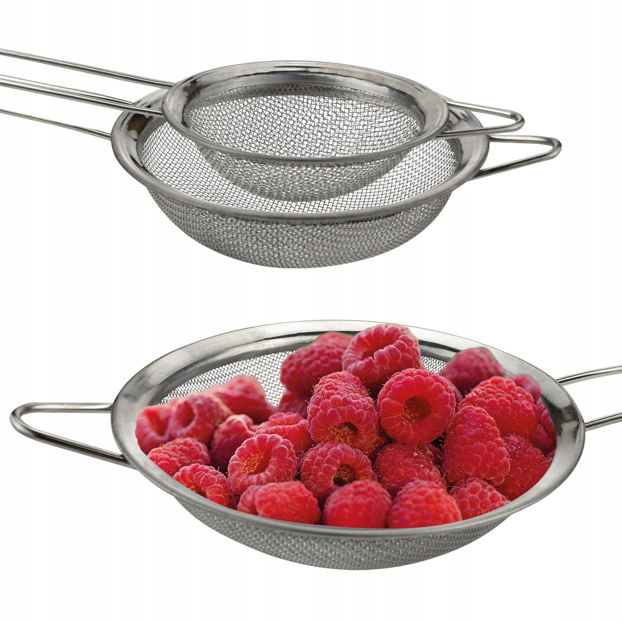 🔹 Wysoka jakość wykonania – sito wykonane ze stali nierdzewnej z metalową ramką gwarantuje trwałość i długowieczność produktu. Dodatkowo wyposażone w wygodną rączkę i zawieszkę, umożliwiającą łatwe przechowywanie.