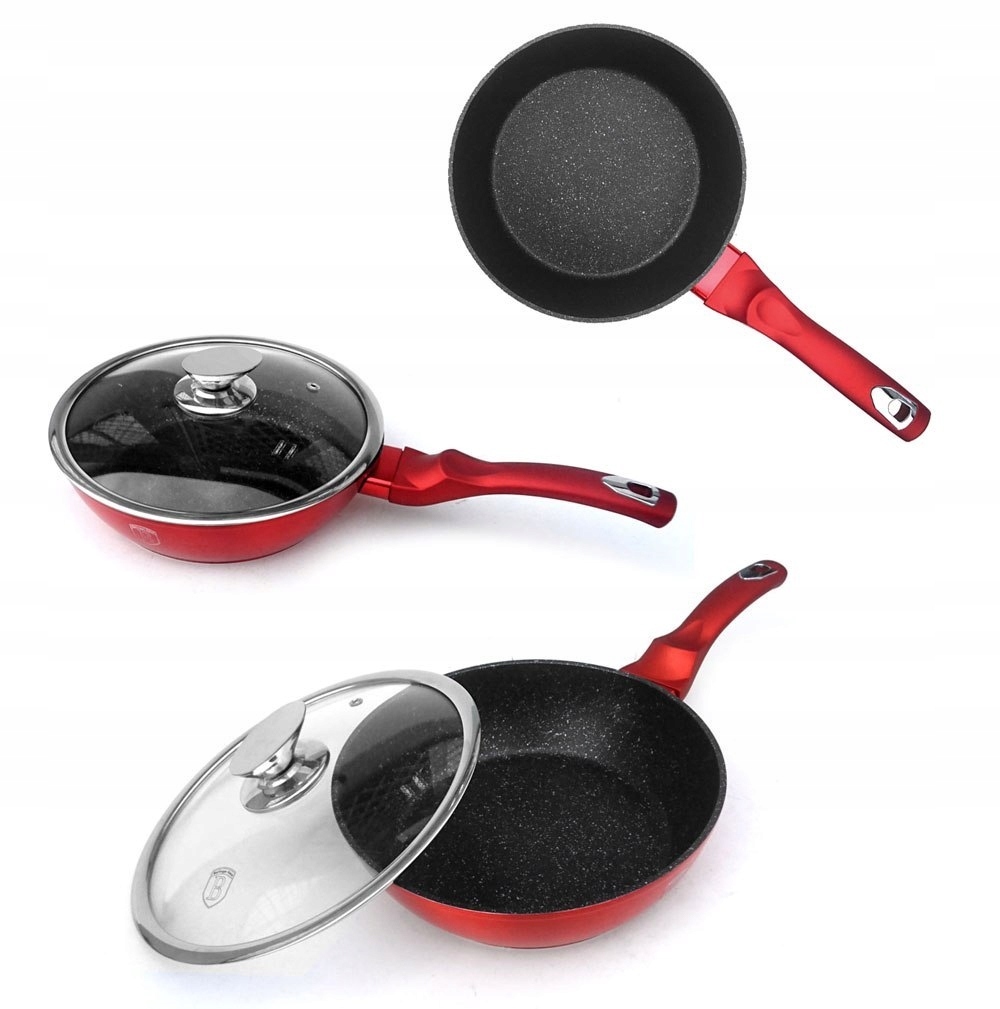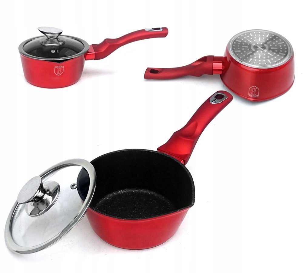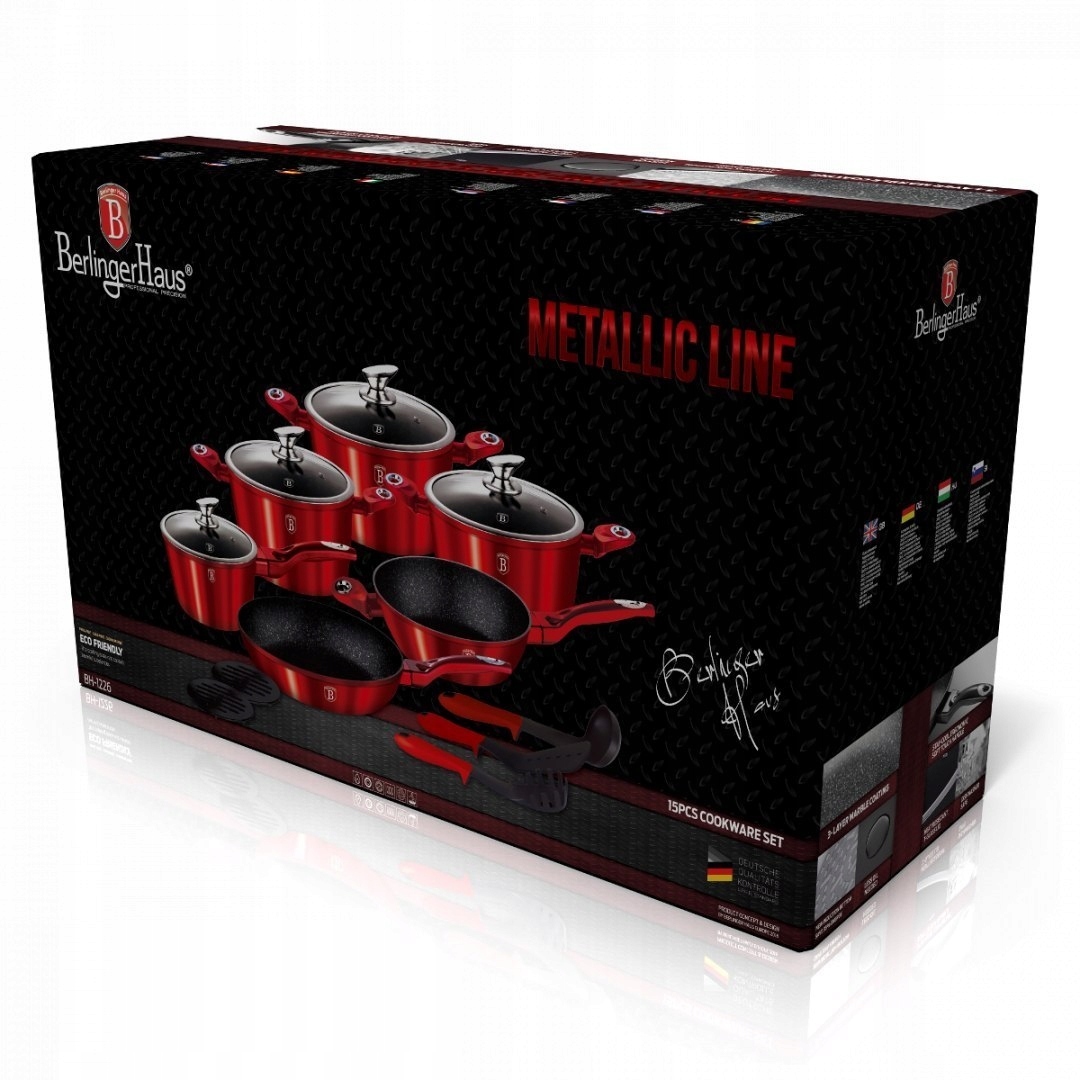 Garnki i akcesoria z serii METALLIC firmy BERLINGERHAUS wykonane są z wysokiej klasy kutego aluminium pokrytego wewnątrz potrójną powłoką granitową (marble) o bardzo wysokim współczynniku twardości. Powłoka zewnętrzna występuje w kilku wersjach kolorystycznych o charakterystycznym metalicznym połysku. Te atrakcyjne i modne naczynia wyposażone są standardowo w uchwyty typu SOFT TOUCH (silikon handle). Przystosowane do wszystkich rodzajów kuchenek: gazowa, elektryczna, ceramiczna, halogenowa, indukcyjna. System TURBO INDUCTION (bardzo szybko nagrzewają się) pozwala zaoszczędzić nawet 35% energii.