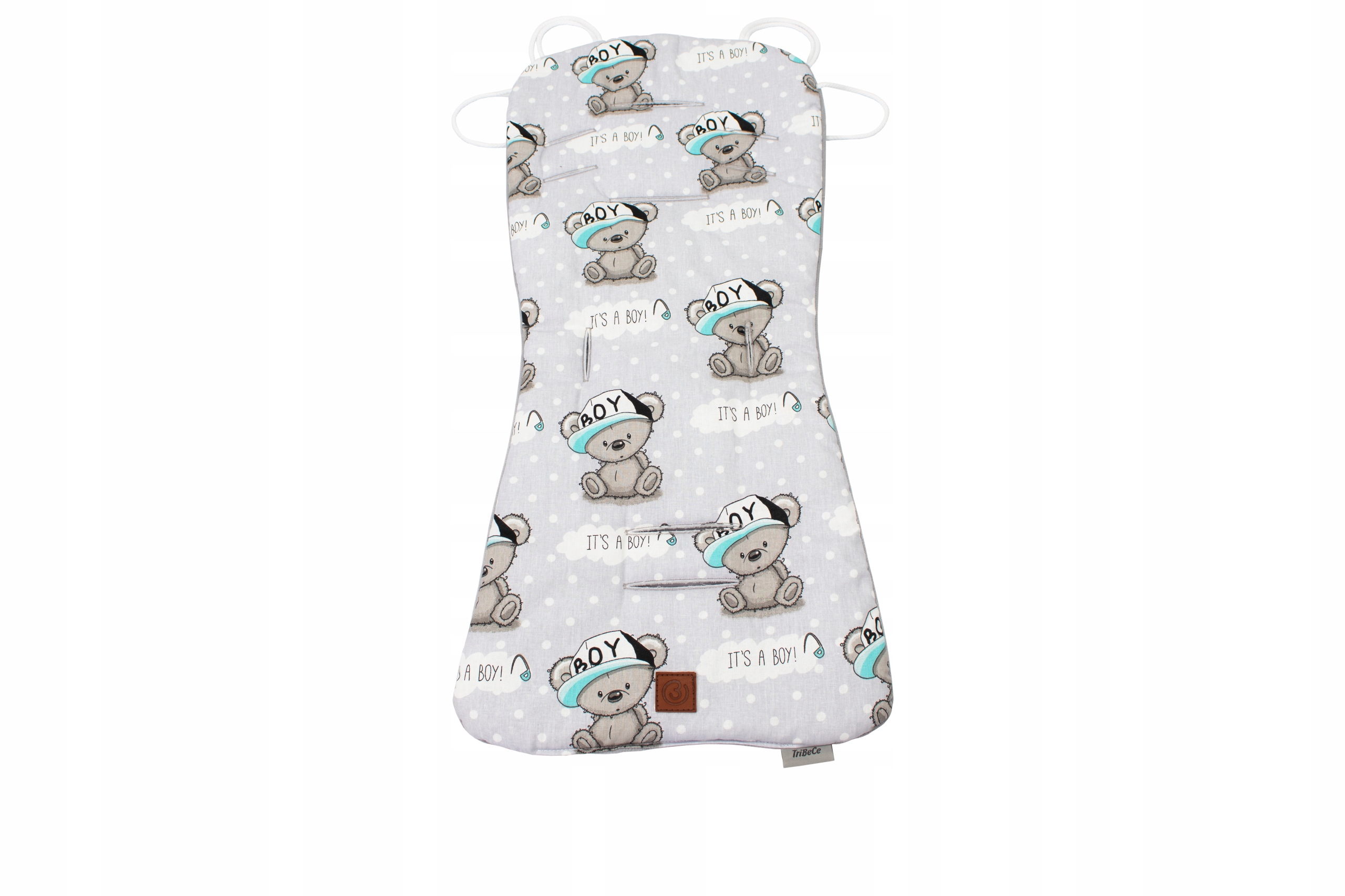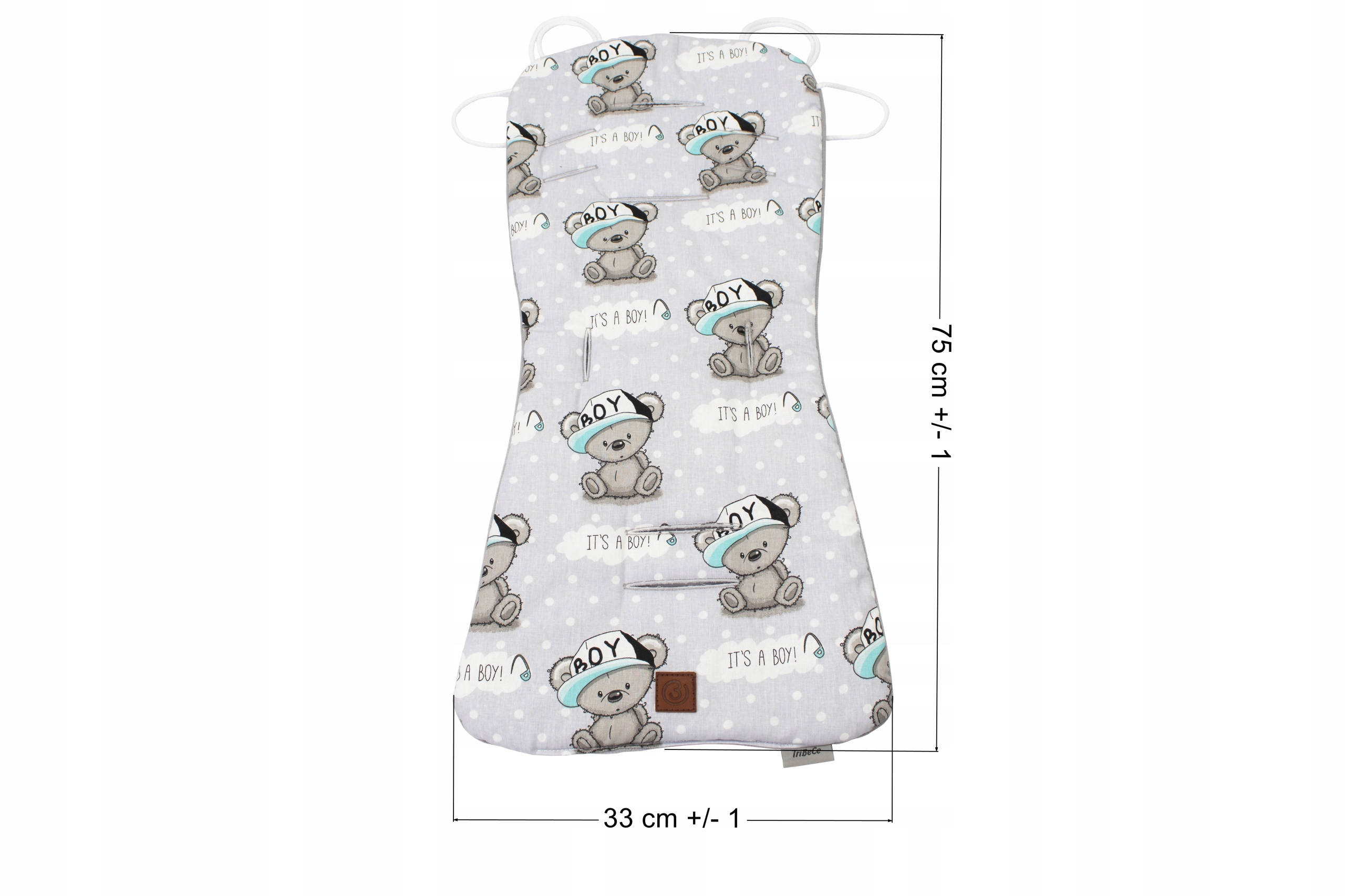 B - сшитые шнурки позволяют прикрепить вставку к спинке коляски, это предотвращает соскальзывание вкладыша с сиденья