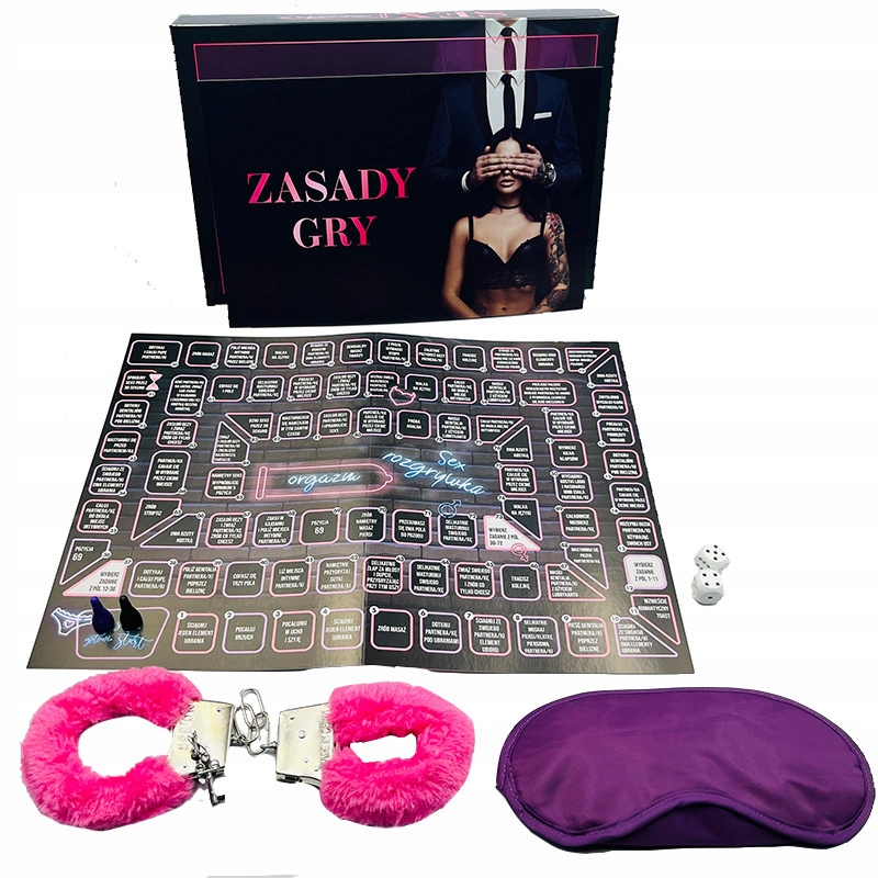 ✅ W zestawie znajdziesz gadżety, które dodają grze pikanterii – miękkie kajdanki z futerkiem oraz opaskę na oczy.
