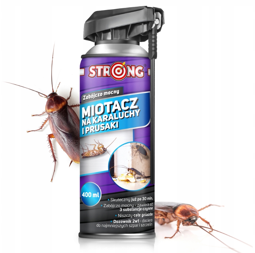 STRONG MIOTACZ to profesjonalny środek na karaluchy oraz prusaki w formie aerozolu owadobójczego. Zawiera trzy aktywne substancje czynne (cypermetryna, tetrametryna, geraniol), które zapewniają natychmiastowe działanie już po 30 minutach od zastosowania.