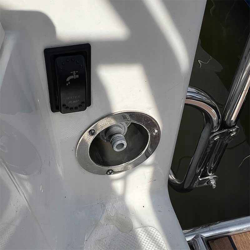Gniazdo prysznica jachtowego wykonane ze stali nierdzewnej AISI 304. Wewnętrzny gwint 3/8" umożliwia wkręcenie dowolnego przyłącza. Kołnierz polerowany.